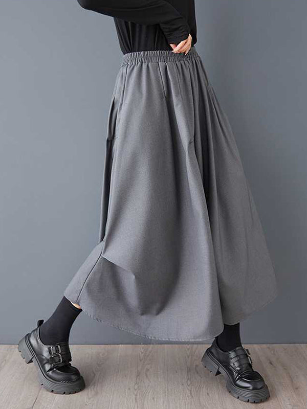 A-Line High Waisted Elasticity Pleated Solid Color Skirts Bottoms