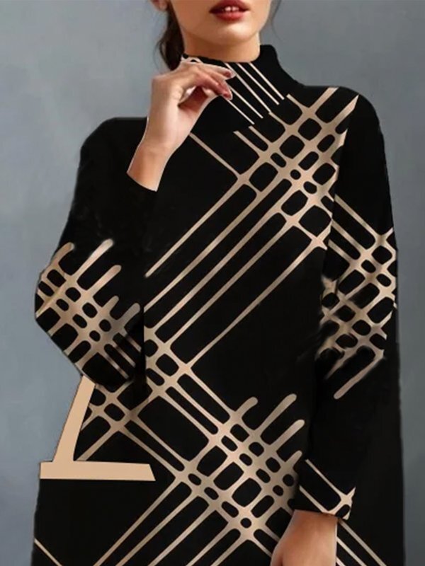 A-Line Long Sleeves Pockets Printed High Neck Mini Dresses