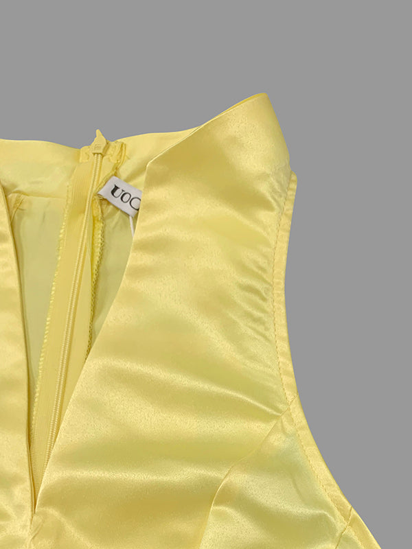 A-Line Loose Belted Pleated Pockets Solid Color V-Neck Midi Dresses
