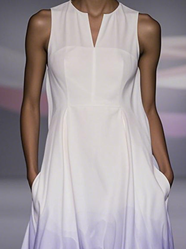 A-Line Loose Floral Printed Gradient Split-Joint V-Neck Maxi Dresses