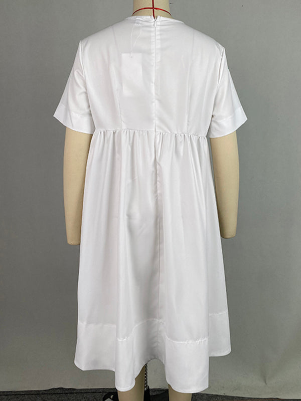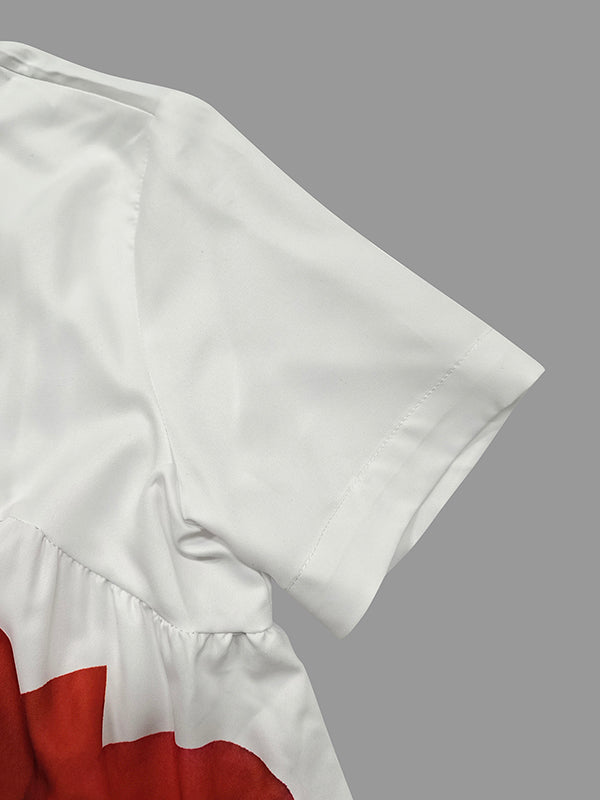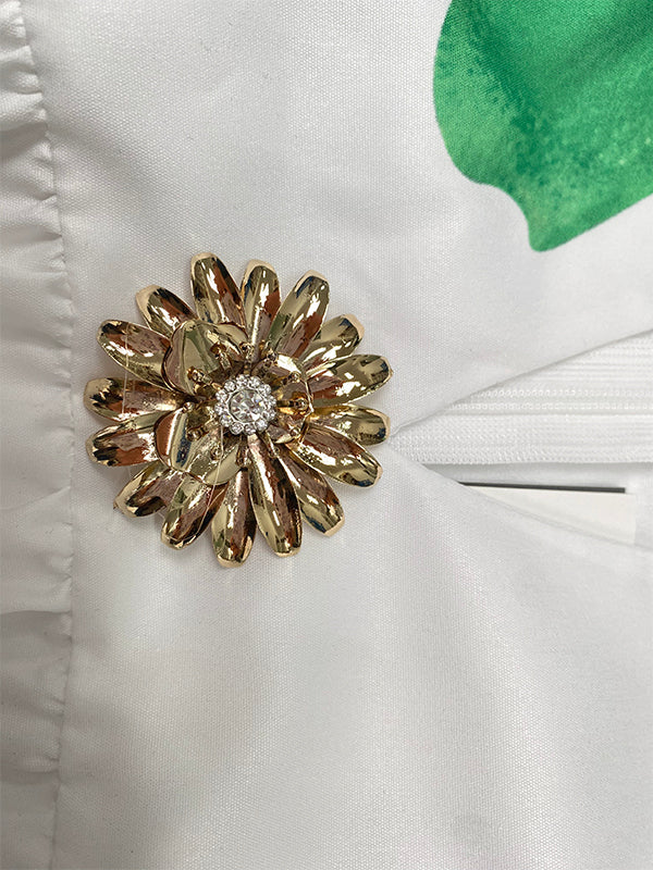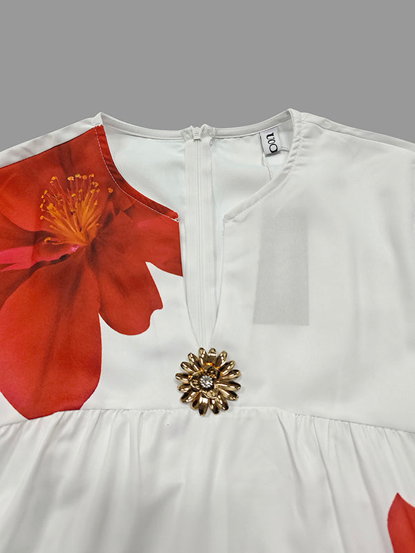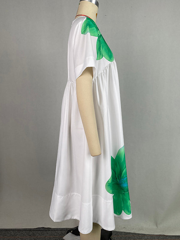 A-Line Loose Flower Print Pleated V-Neck Midi Dresses