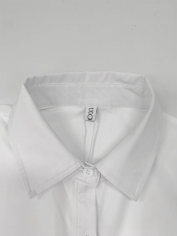 A-Line Loose Pleated Solid Color Split-Joint Lapel Maxi Dresses Shirt Dress