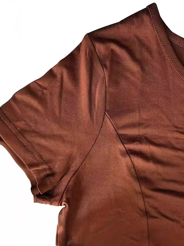 A-line Loose Pockets Solid Color Split-Joint Round-neck Midi Dresses