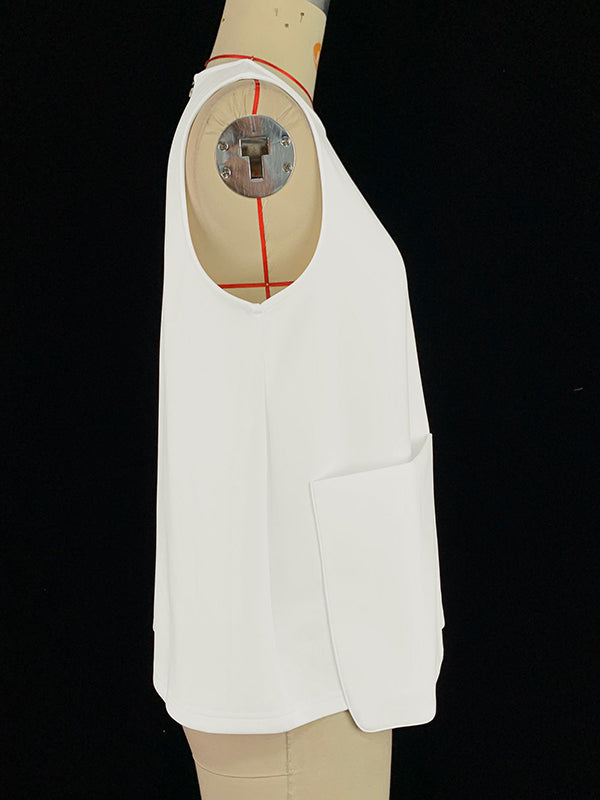 A-Line Loose Solid Color Split-Joint Round-Neck Vest Top