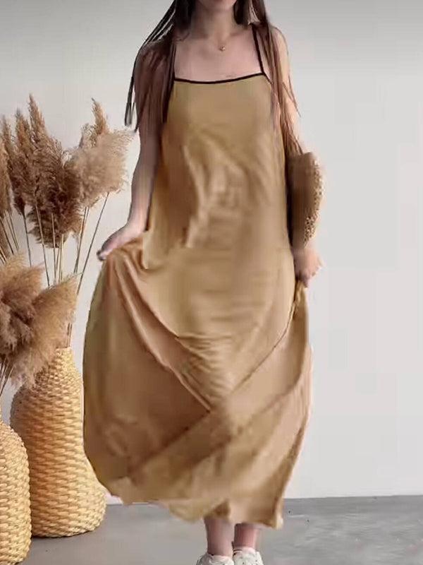 A-Line Loose Split-Joint Spaghetti-Neck Maxi Dresses