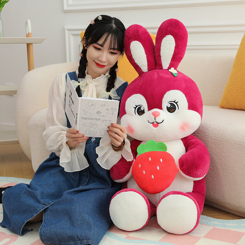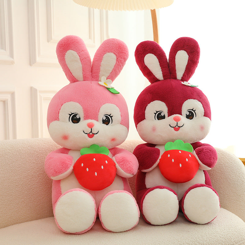 Adorable Plush Rabbit with Juicy Strawberry Companion