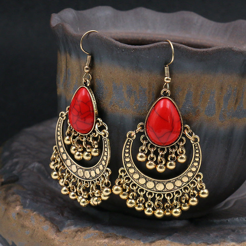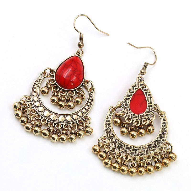 Alloy geometric bead turquoise earrings