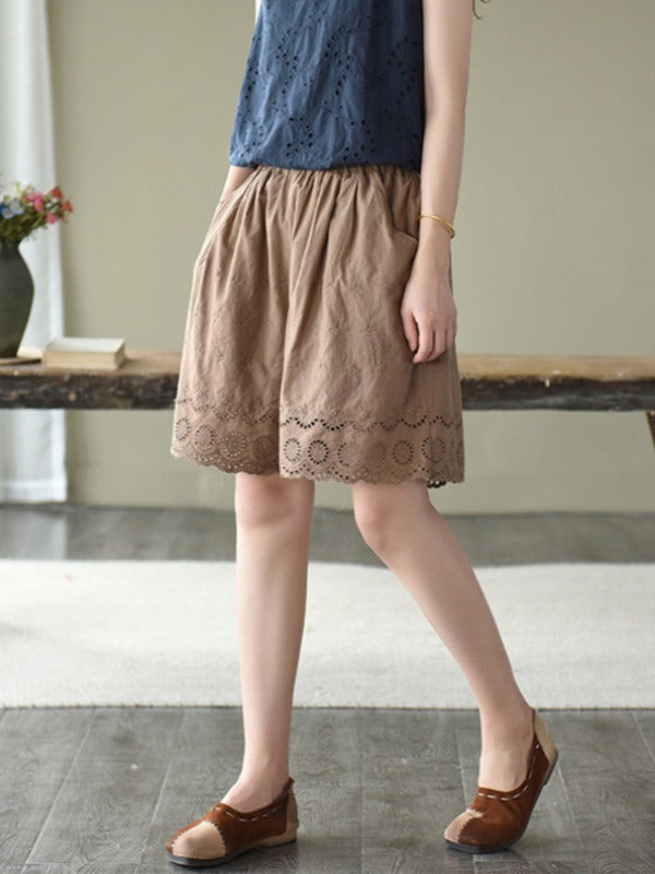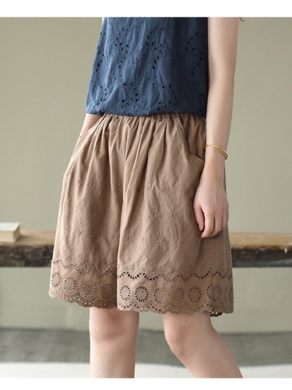 ARTISTIC RETRO HOLLOW EMBROIDERED SHORTS