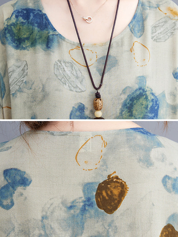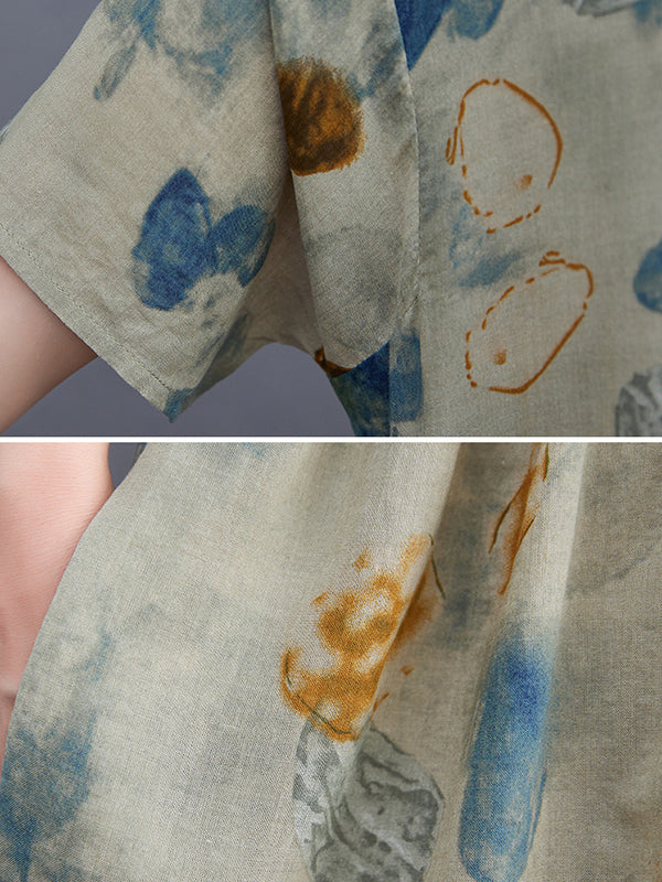 Artistic Retro Loose Floral Printed Pleated Vacation Midi Dress
