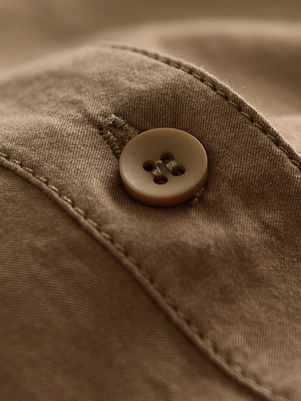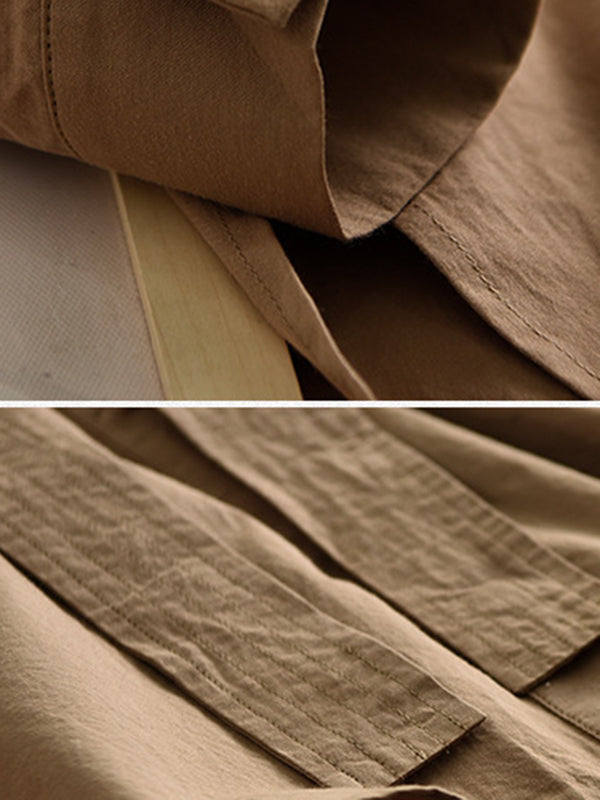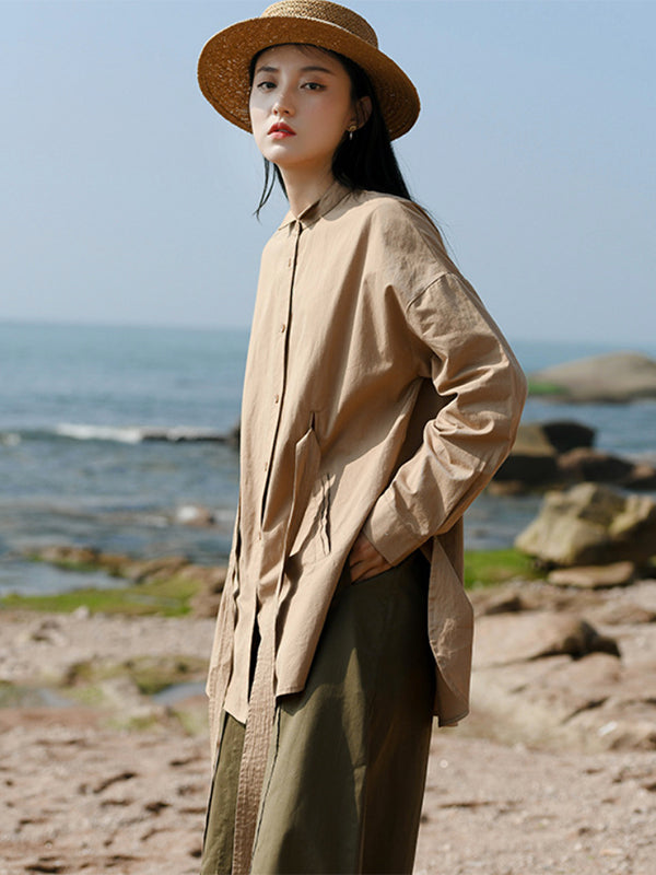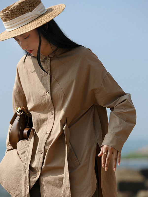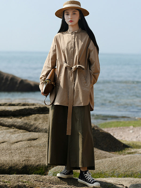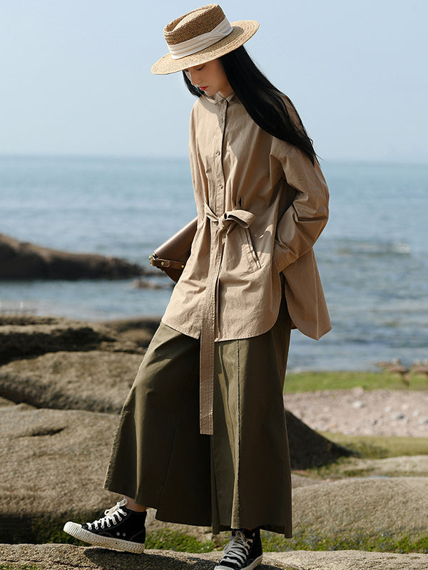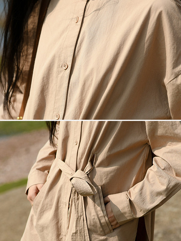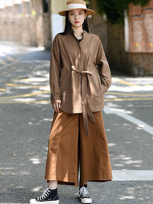 Artistic Retro Loose Long Sleeves Buttoned Tied Solid Color Stand Collar Blouses&Shirts Tops