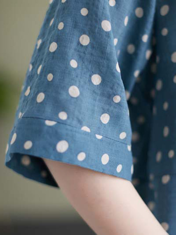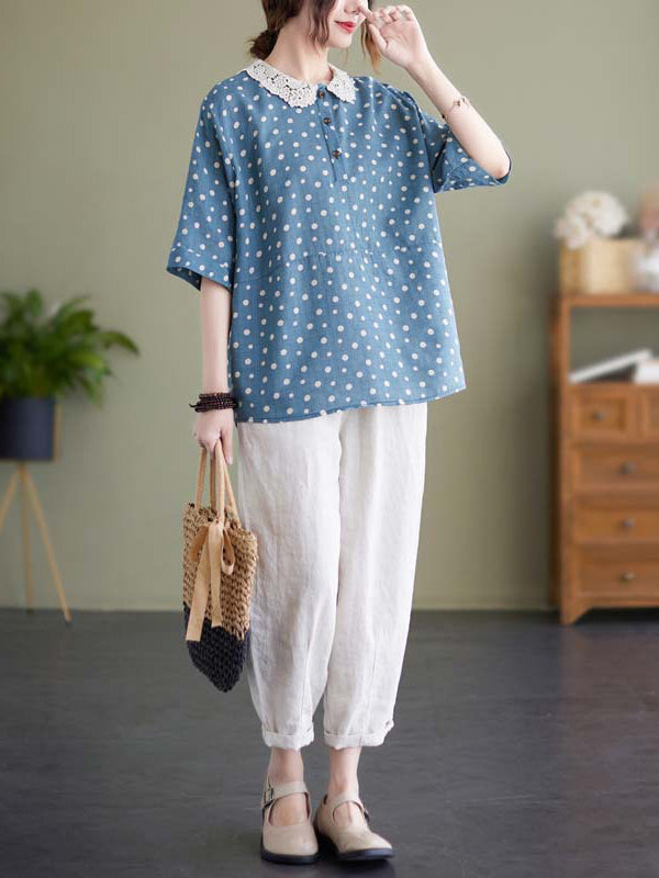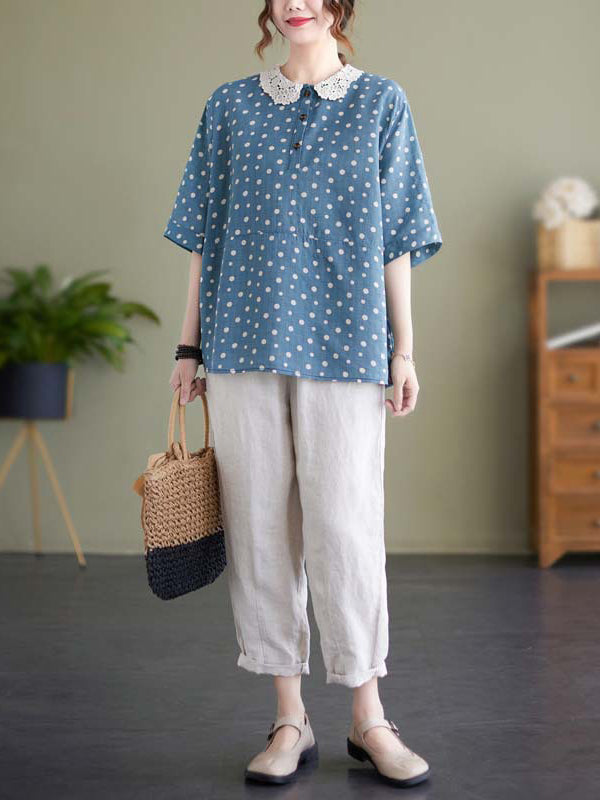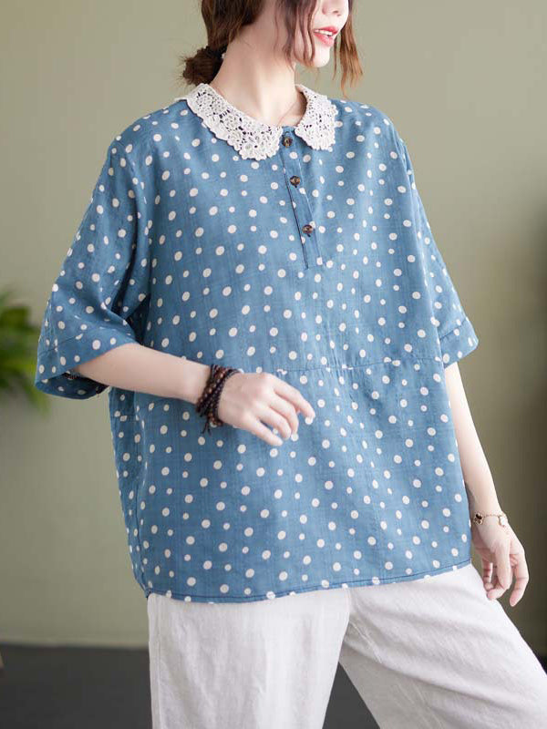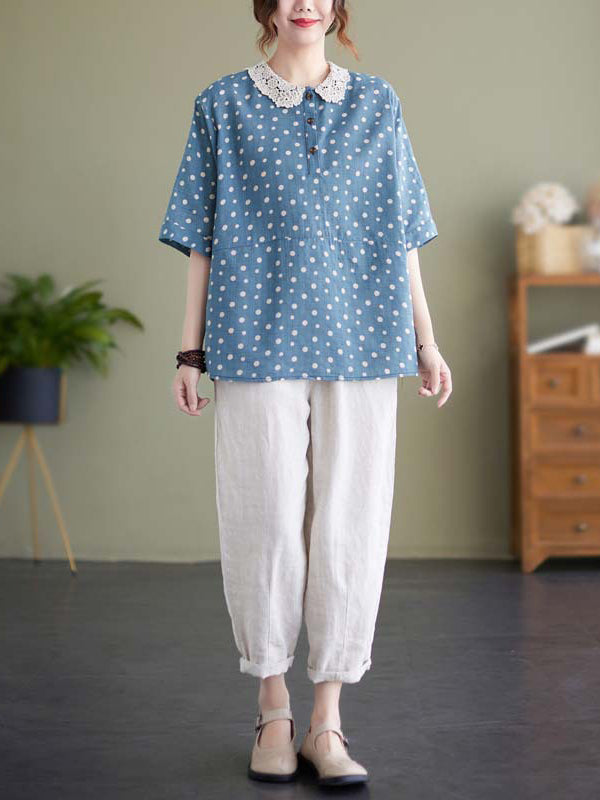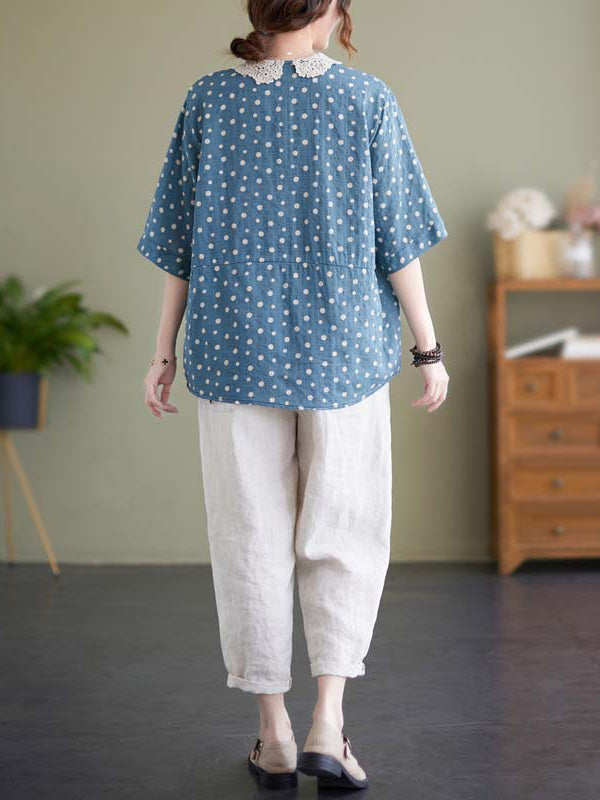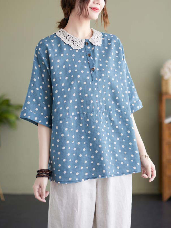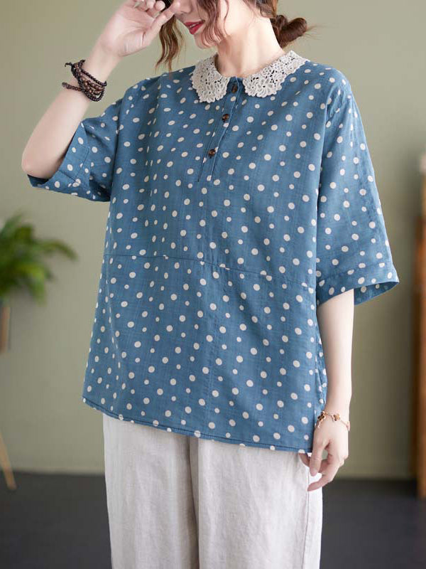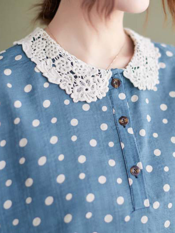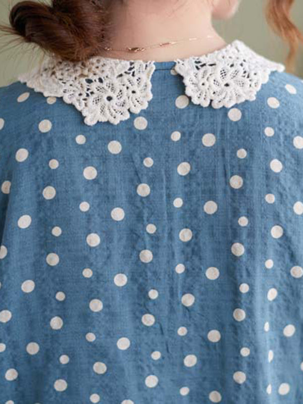Artistic Retro Loose Polka-Dot Hollow Lace Peter Pan Collar Blouse