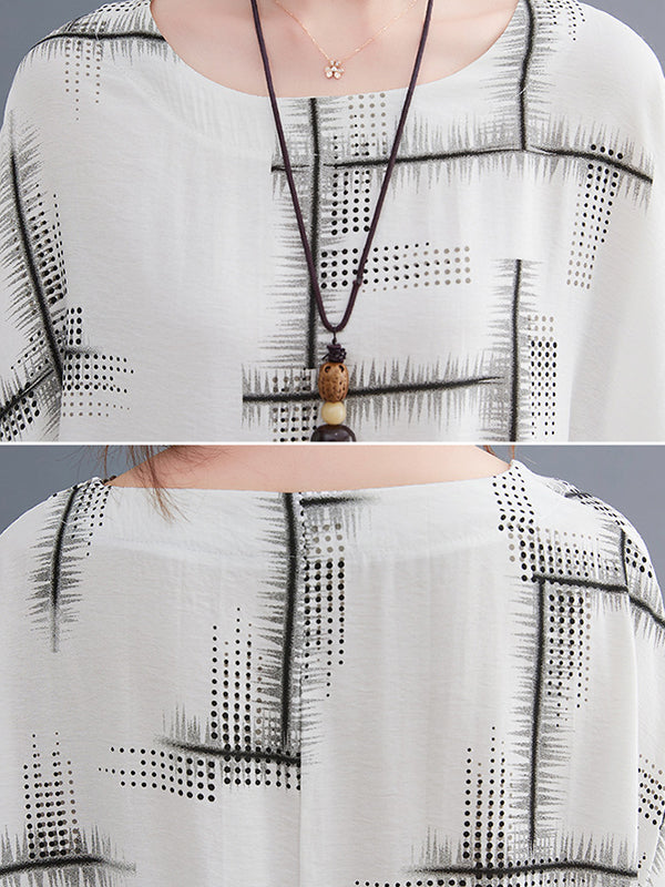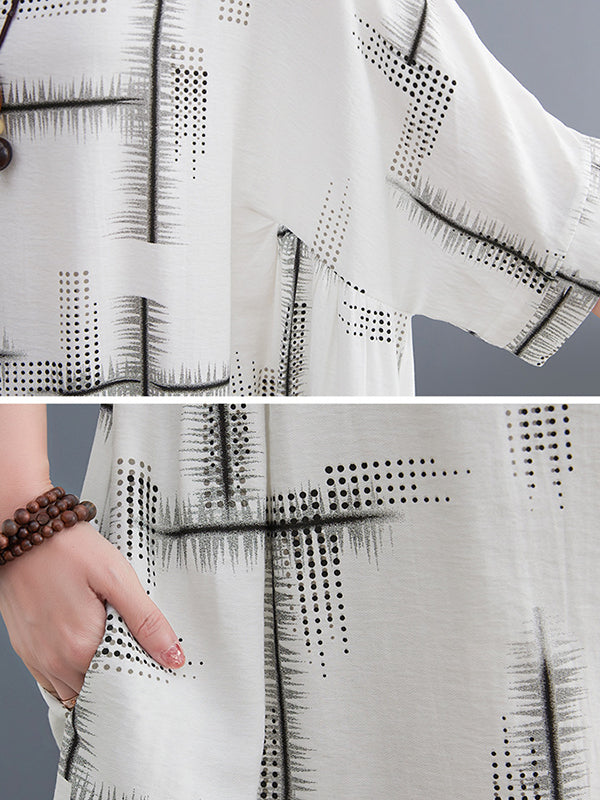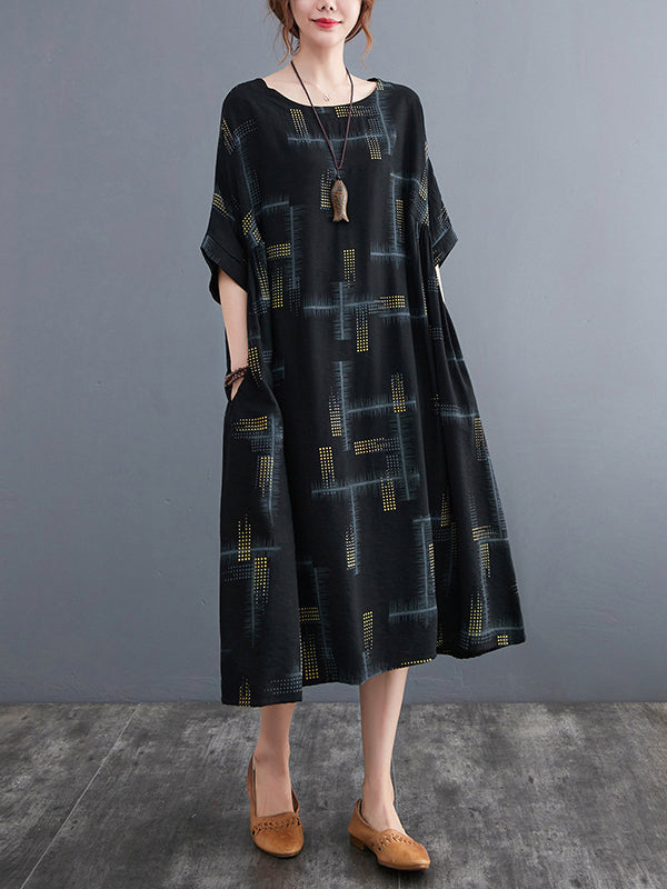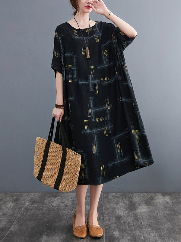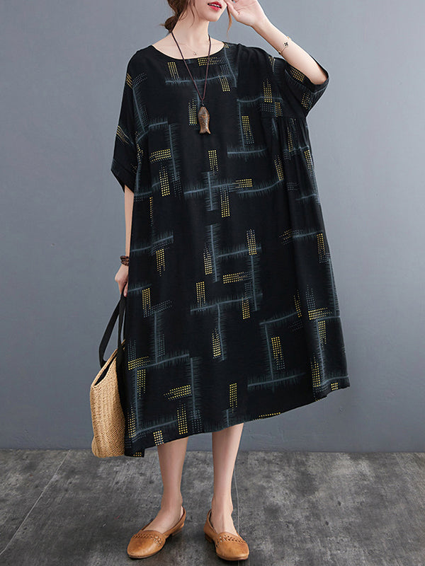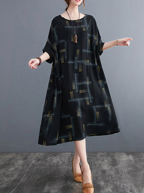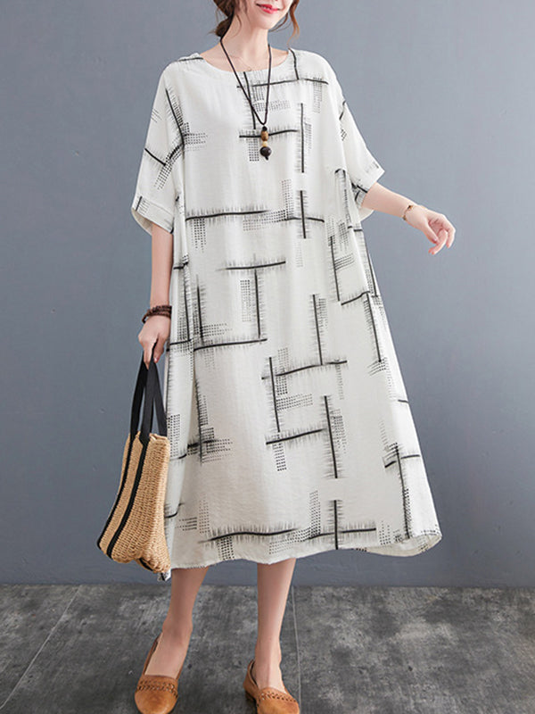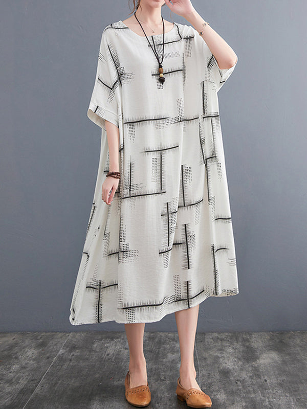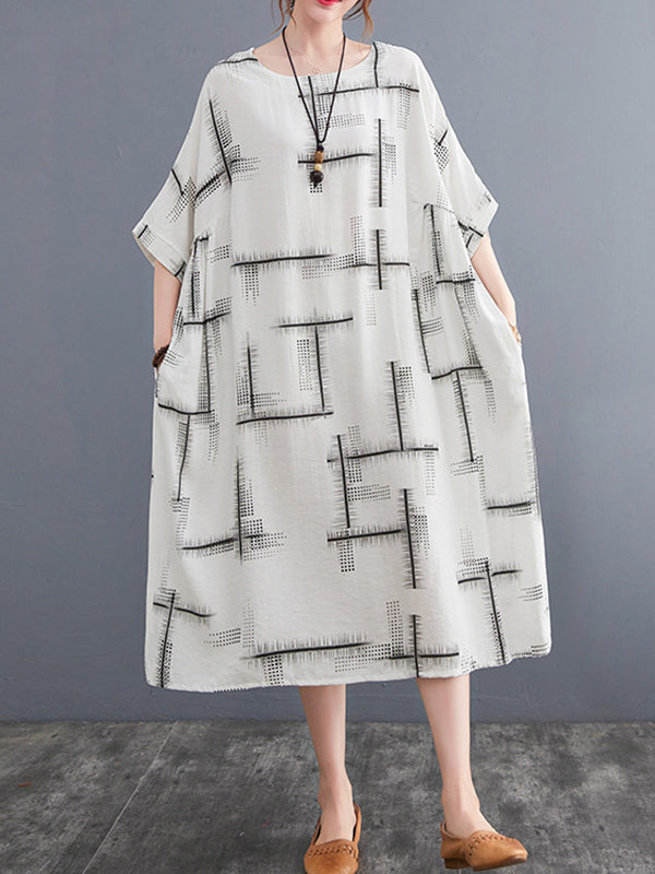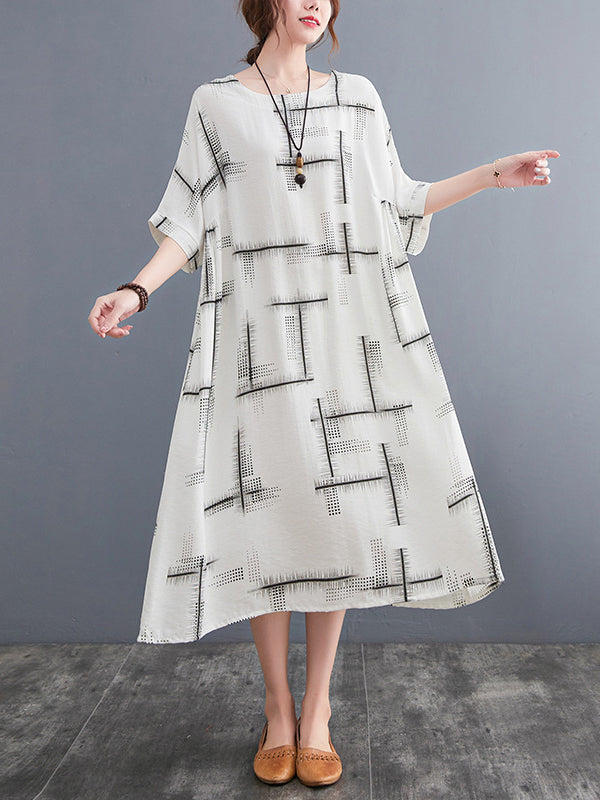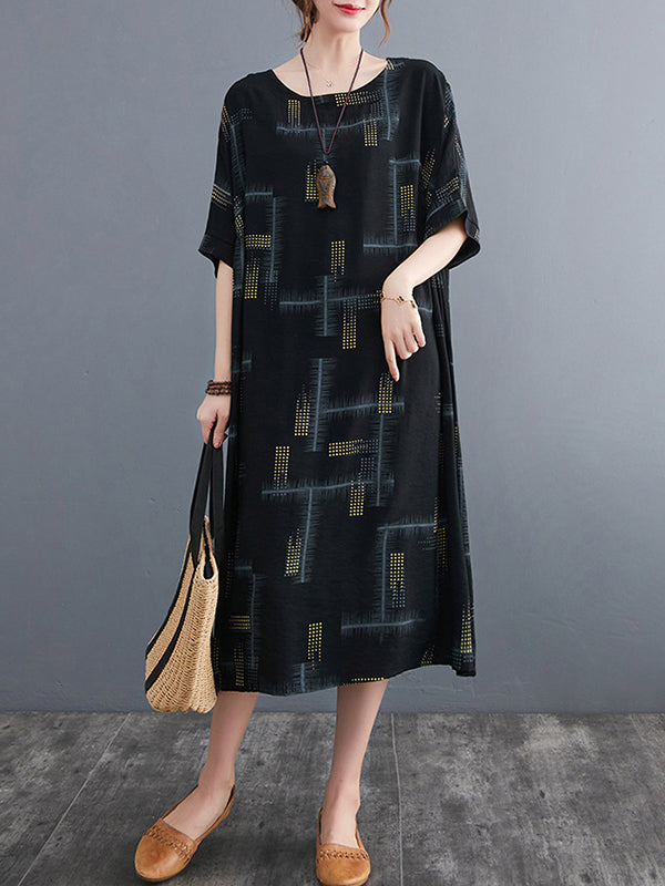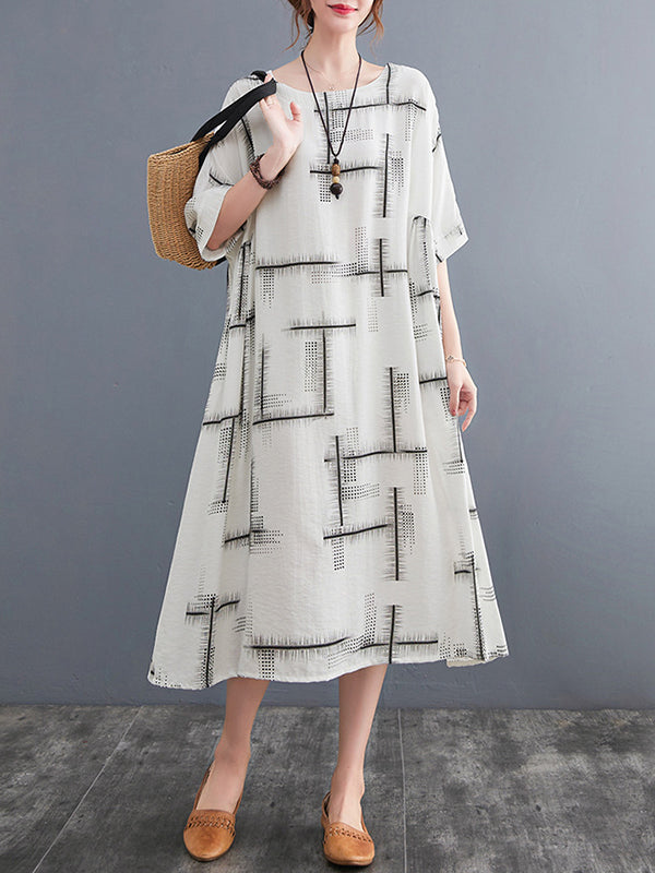 Artistic Retro Loose Striped Printed Contrast Color Midi Dress