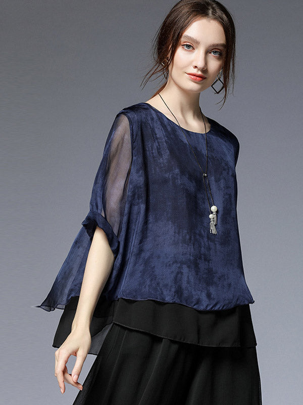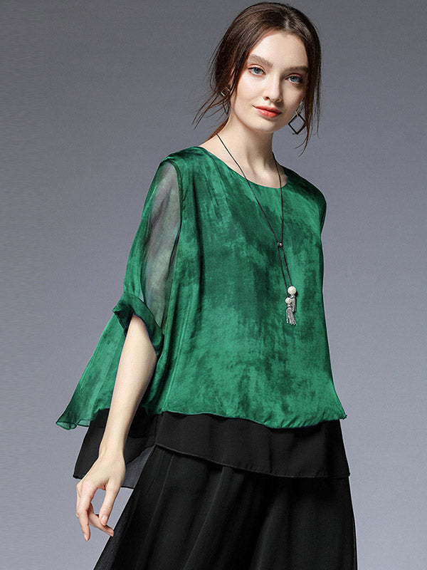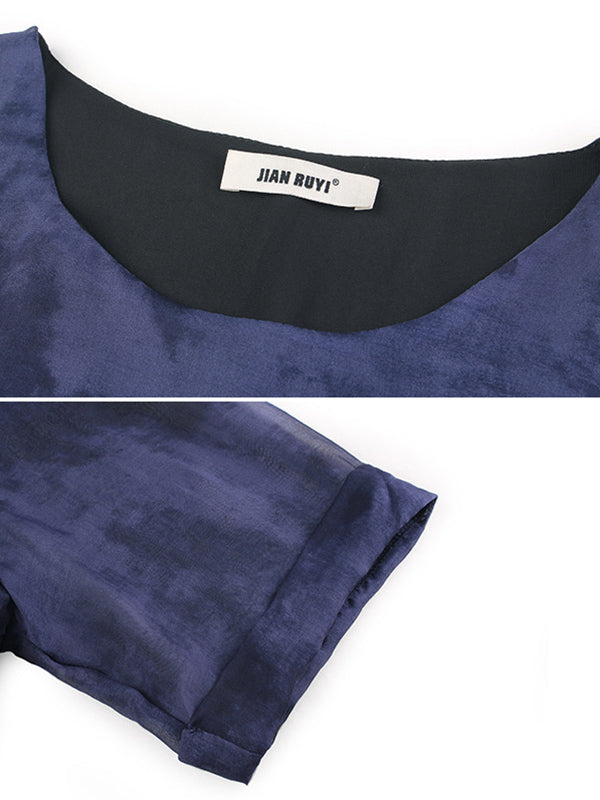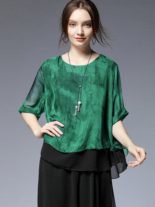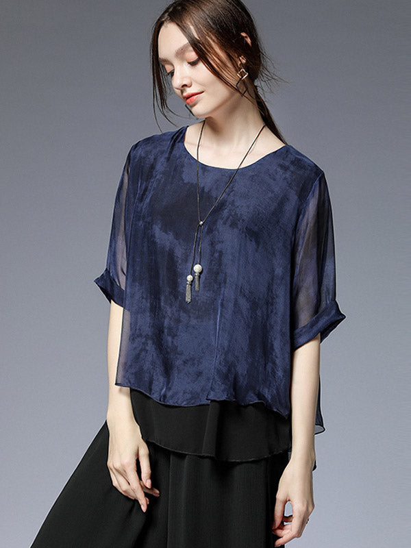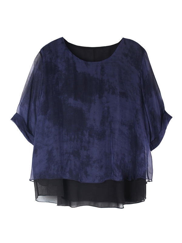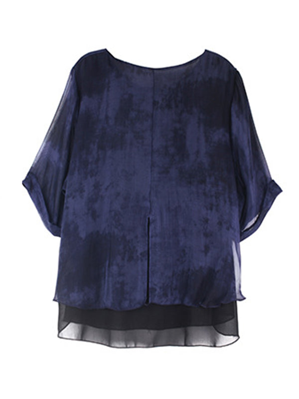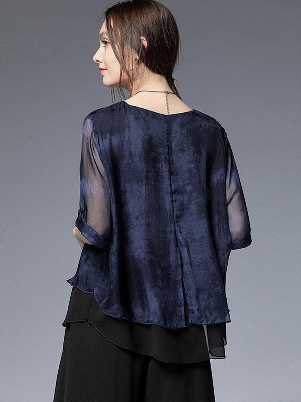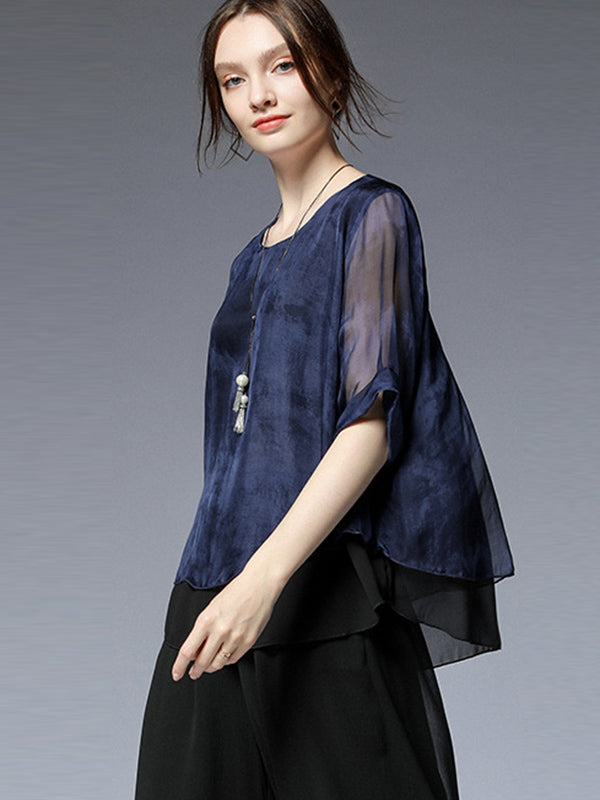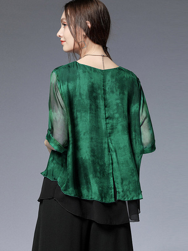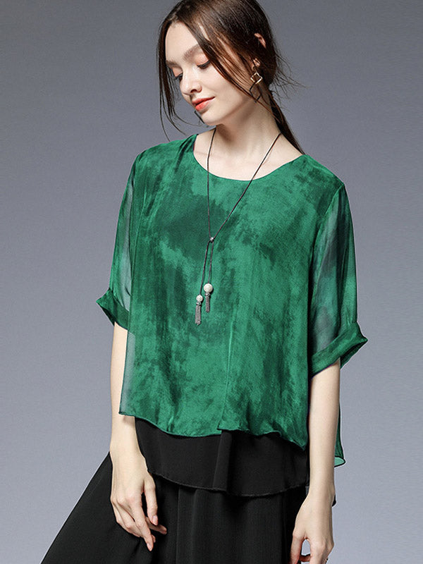 Artistic Retro Mulberry Silk Loose Printed Round-Neck Half Sleeves T-Shirt Tops