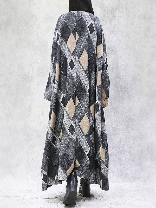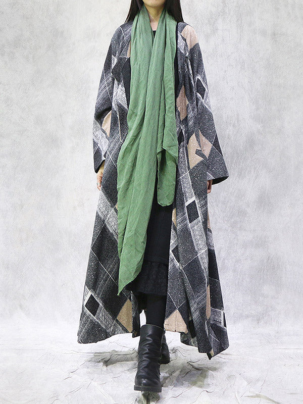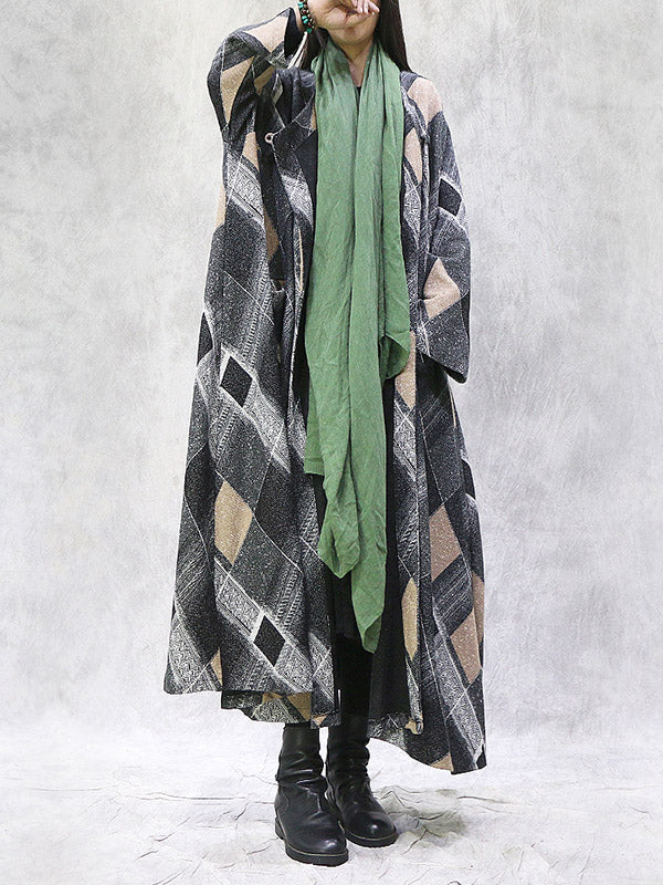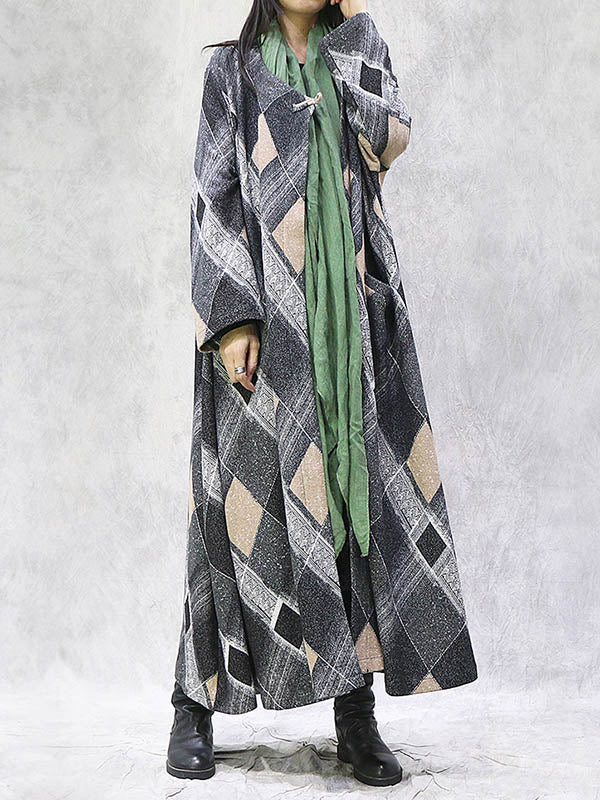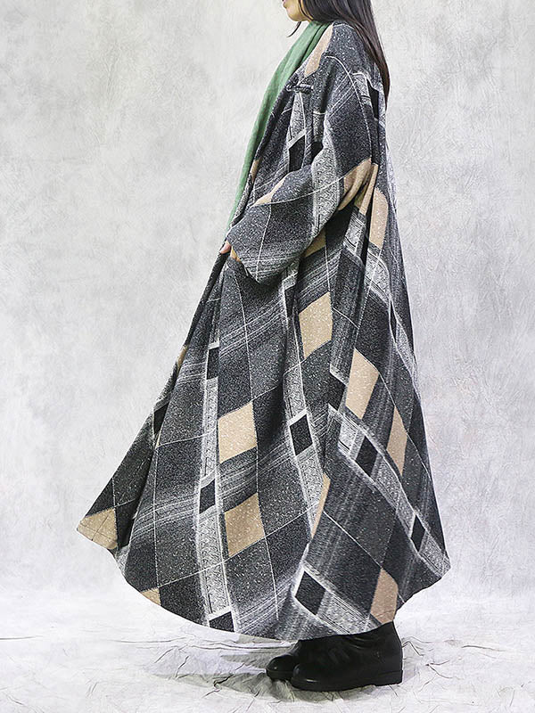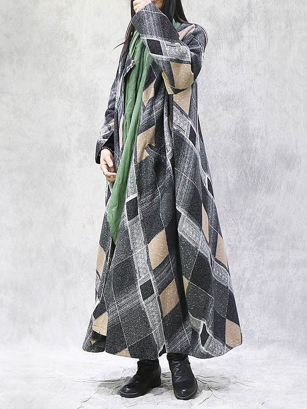 Artistic Retro Plus Size Plaid Long Sleeves Coat