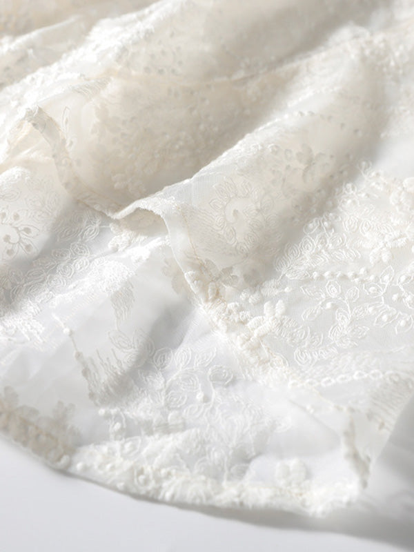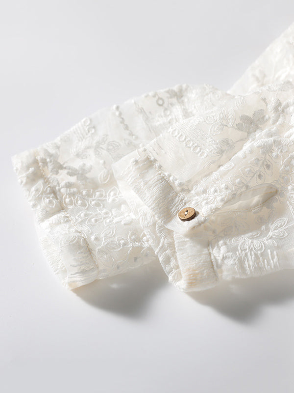 Artistic Retro Solid Color Lace Embroidered Buttoned Lapel Collar Blouse