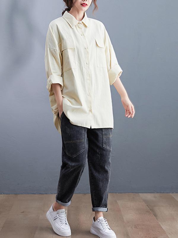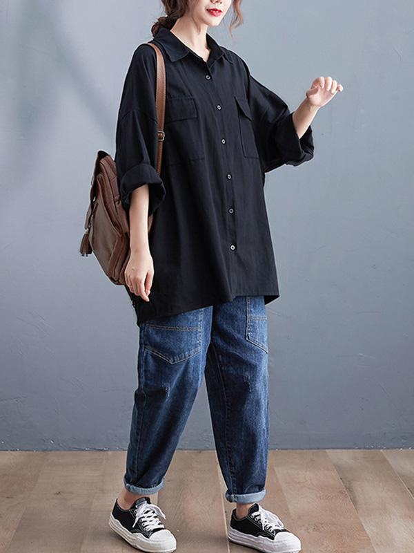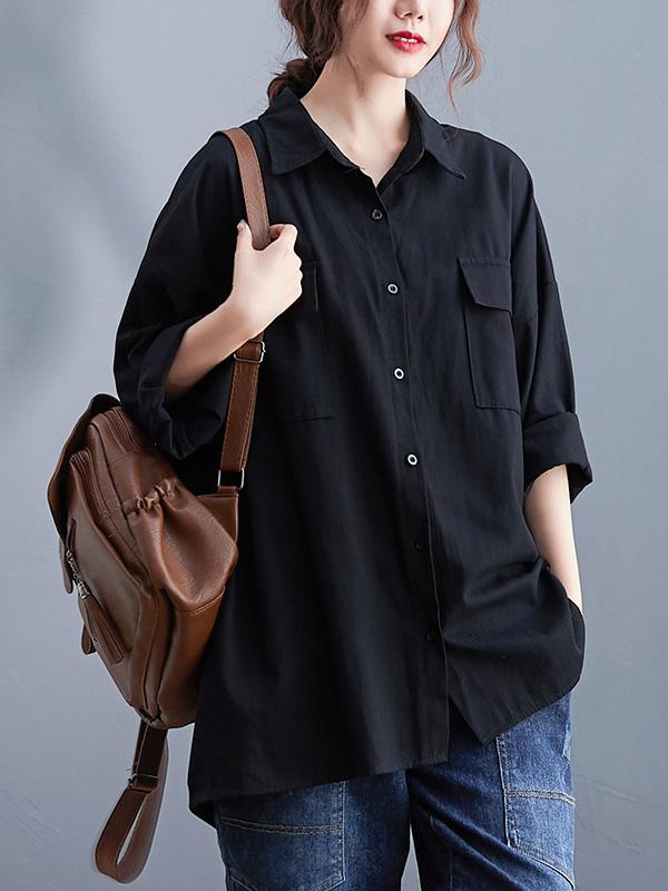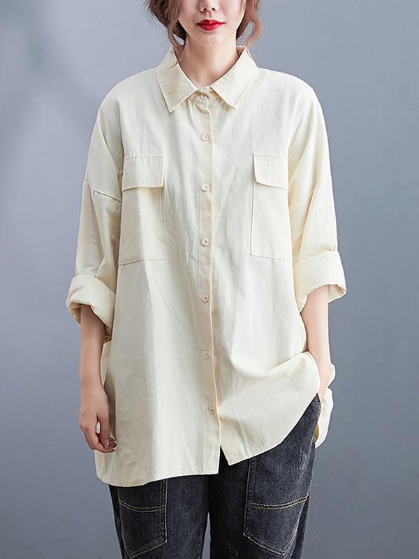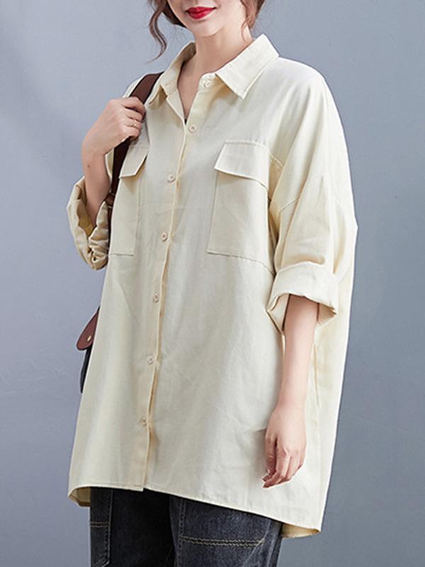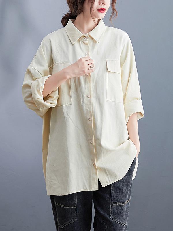 Artistic Retro Solid Lapel Blouses&Shirts Tops