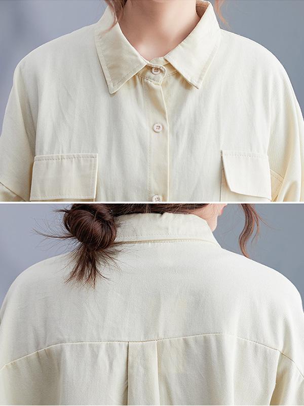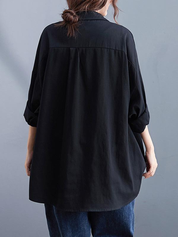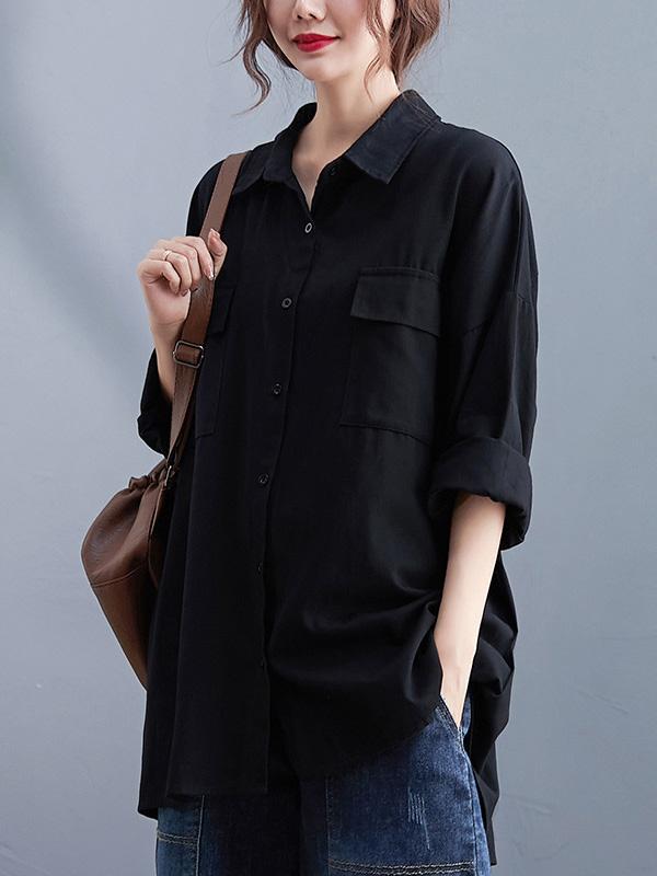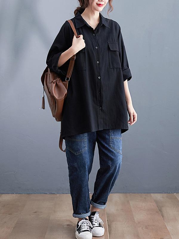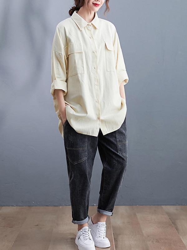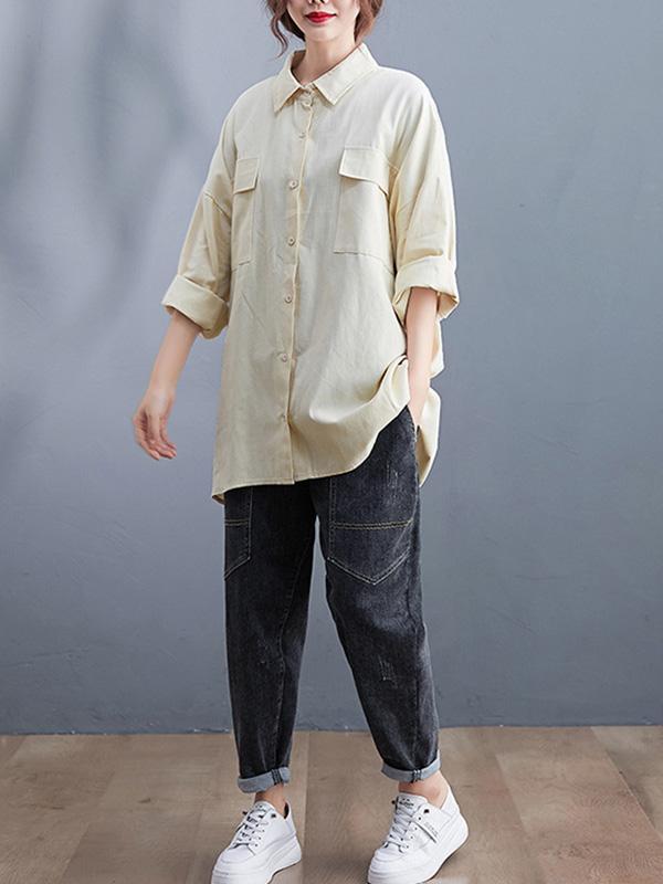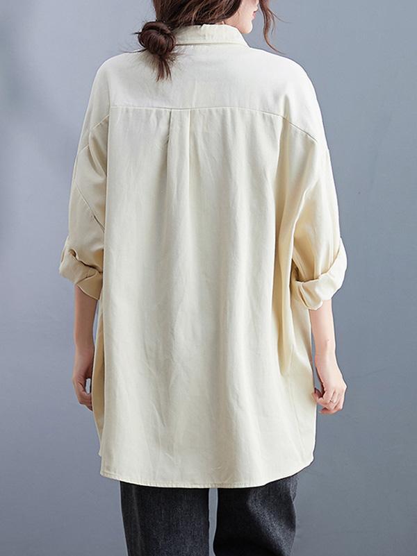 Artistic Retro Solid Lapel Blouses&Shirts Tops