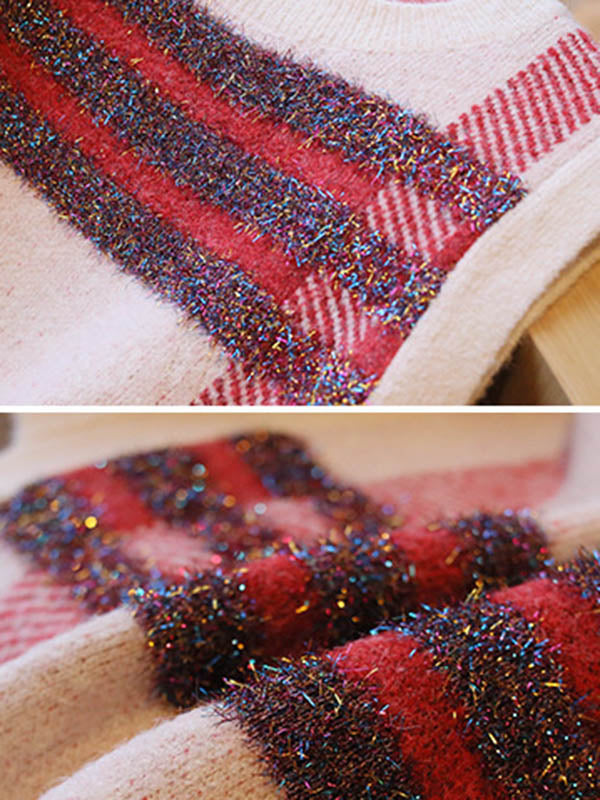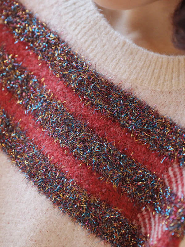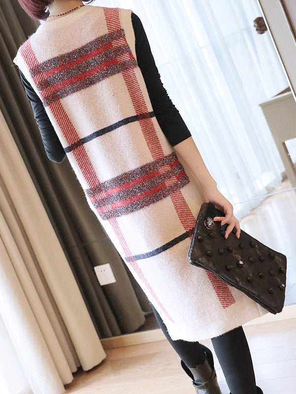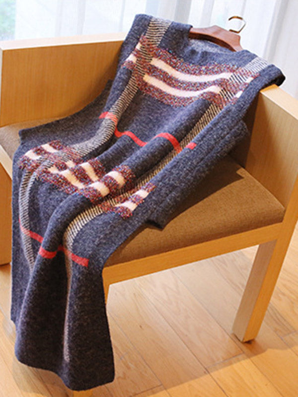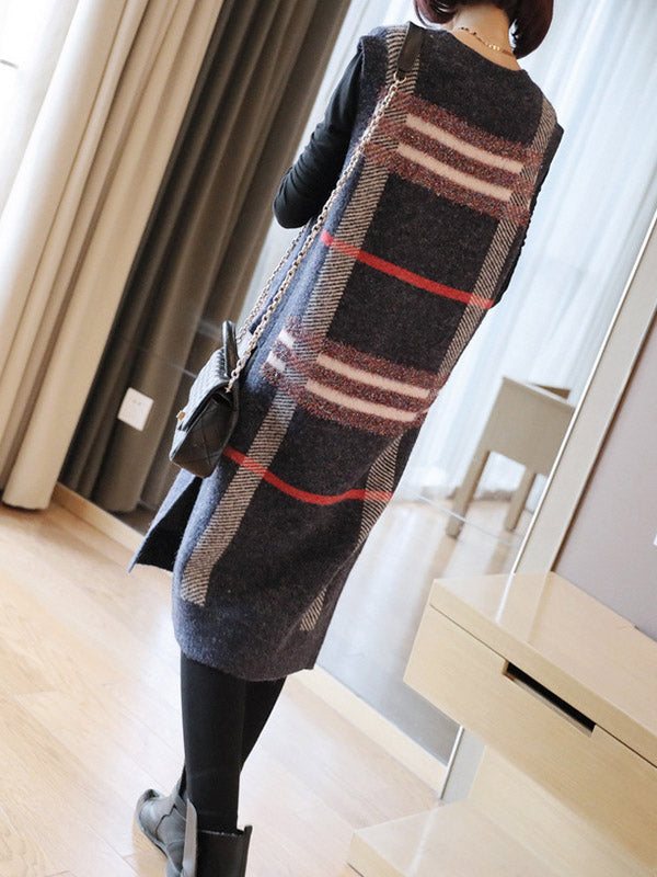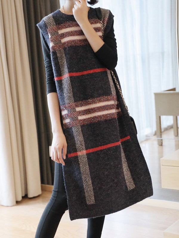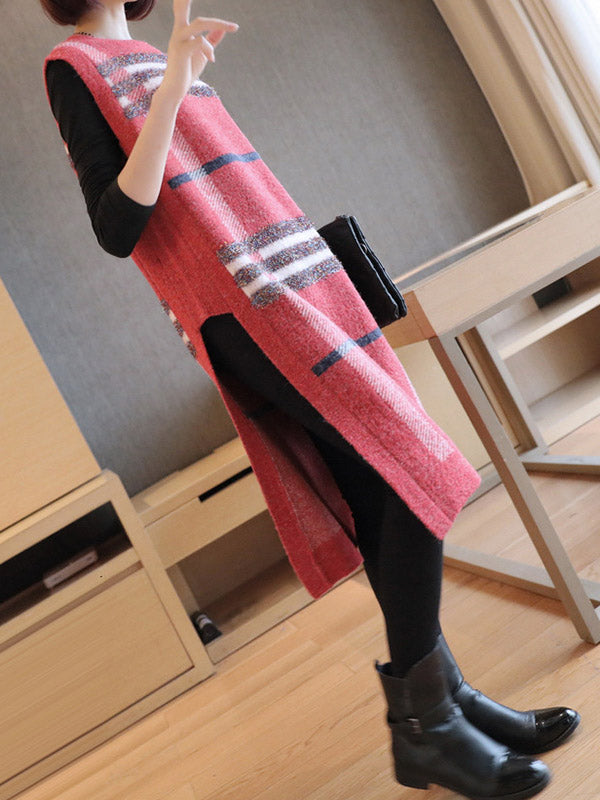 Artistic Retro Striped Split-Side Round-Neck Sleeveless Knitted Vest