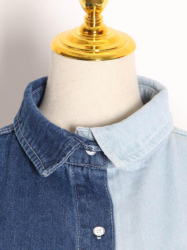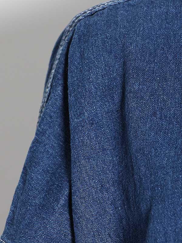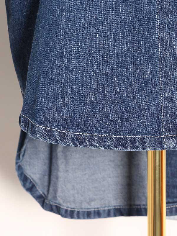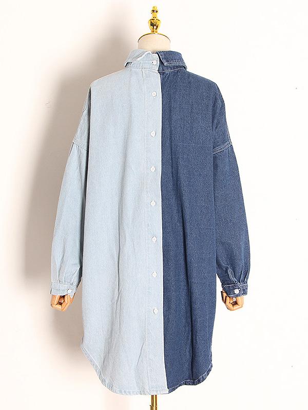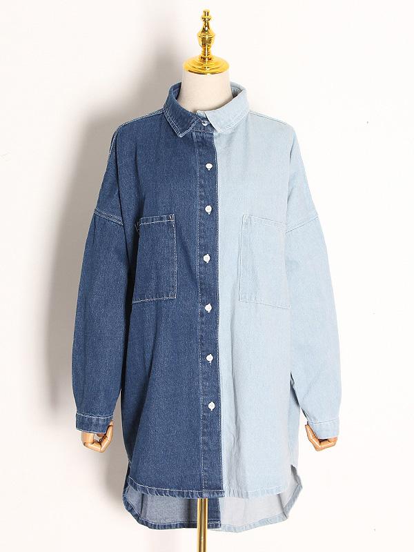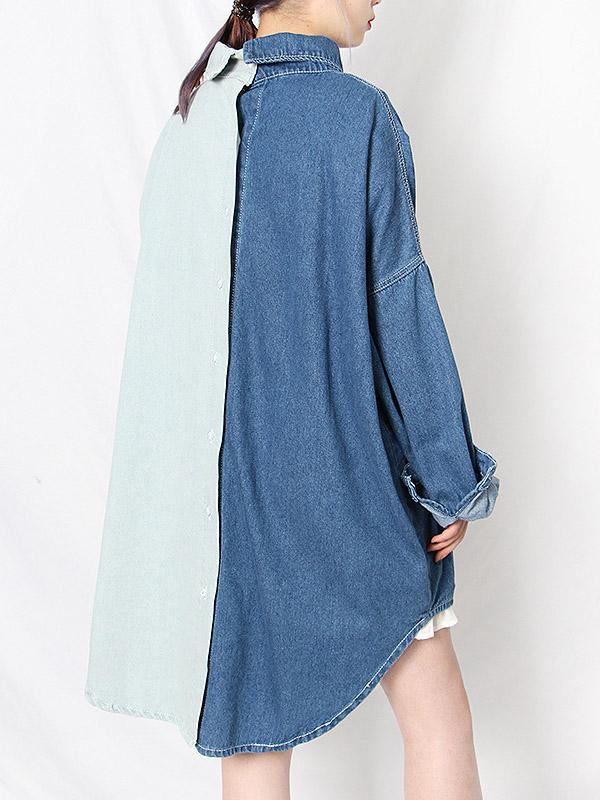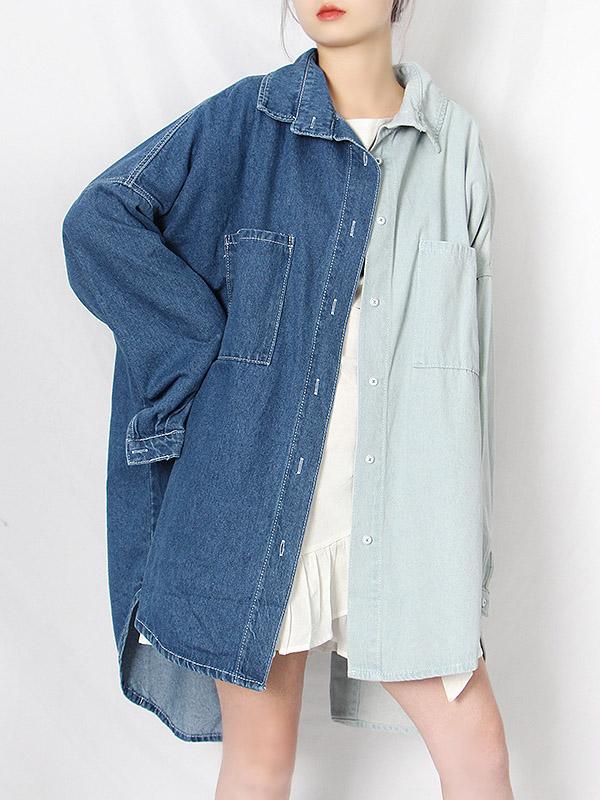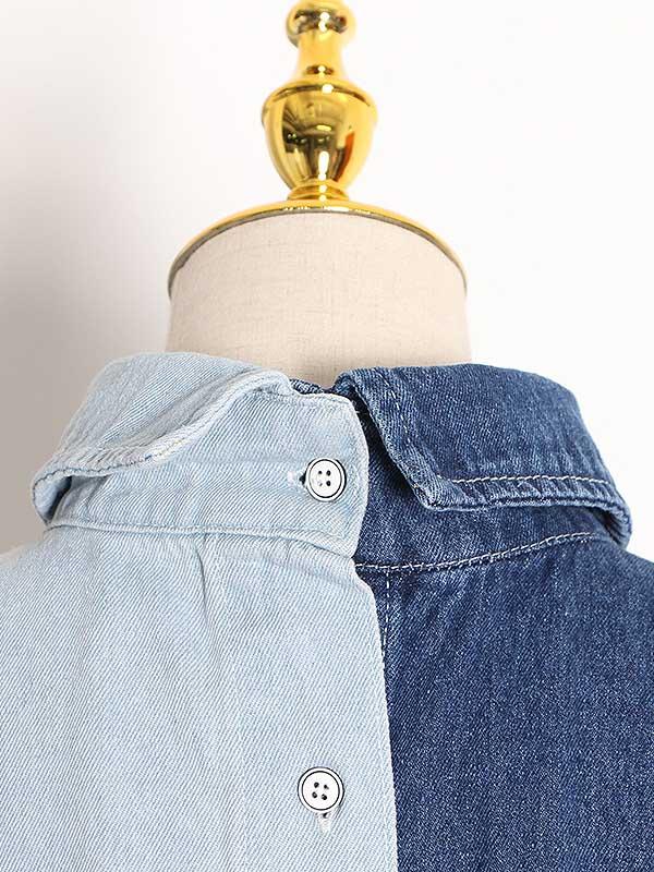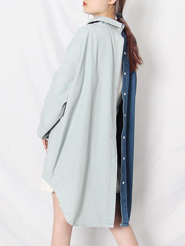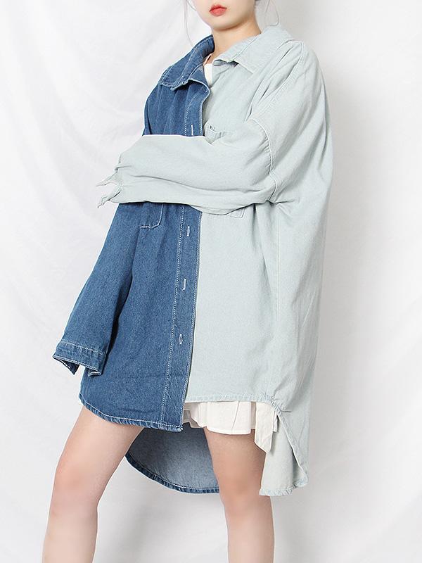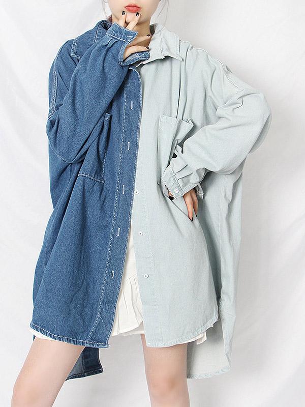 Asymmetric Contrast Color Batwing Sleeve Lapel Denim Blouse Outwear