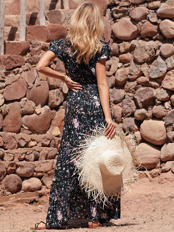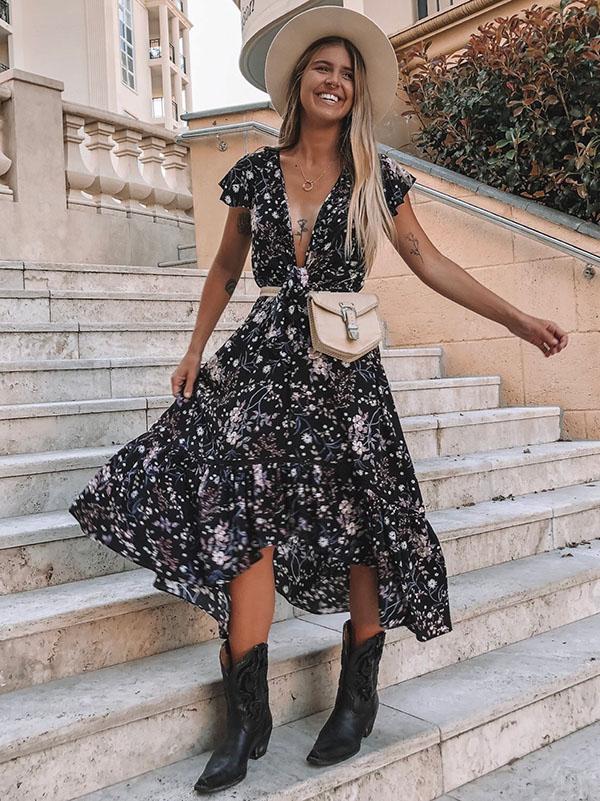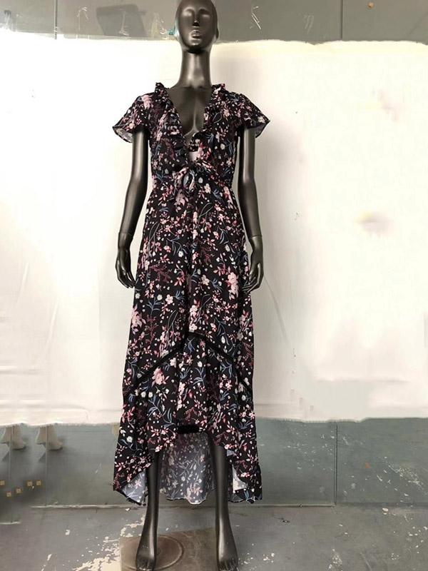 Asymmetric Deep V-neck Bohemia Maxi Dress