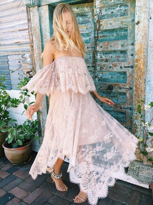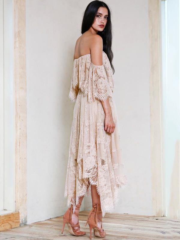 Asymmetric Lace Split-joint Off-the-shoulder Maxi Dress