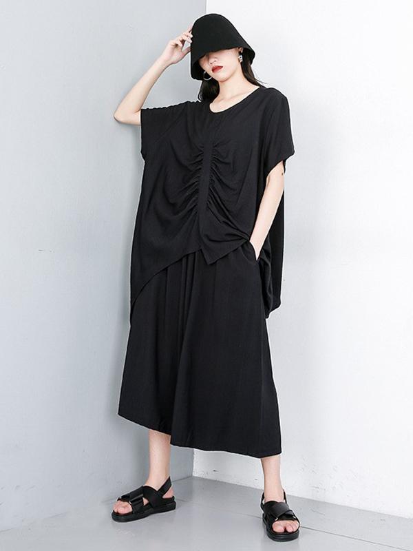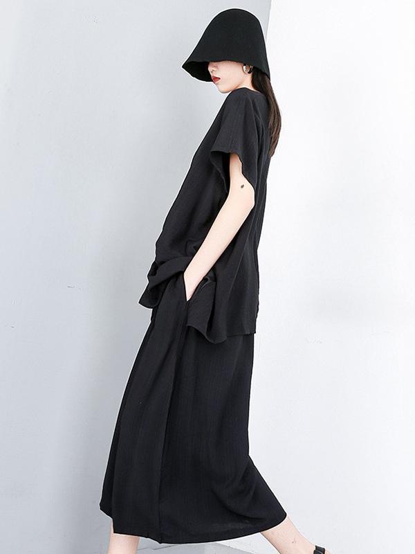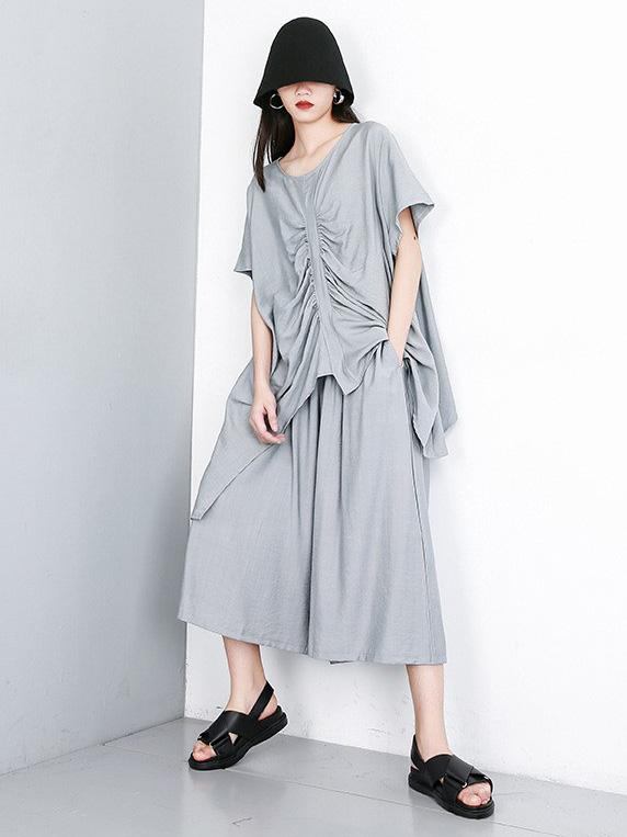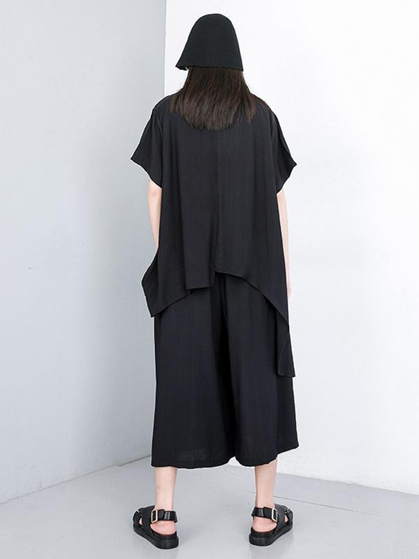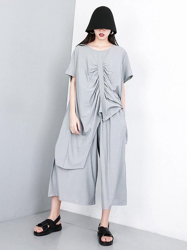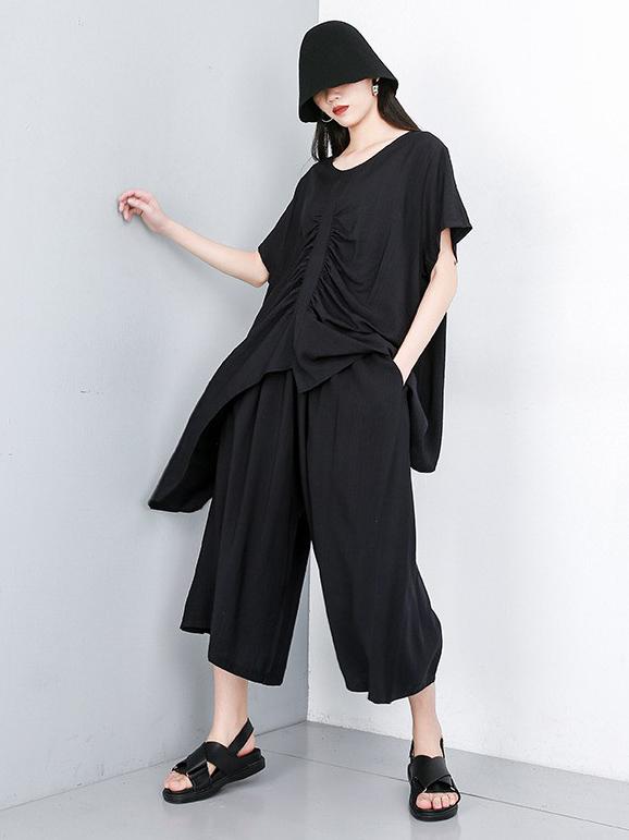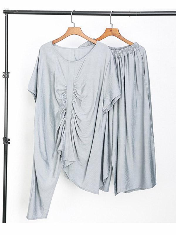 Asymmetric Ruffled Solid Tops + Wide Leg Pants Suit