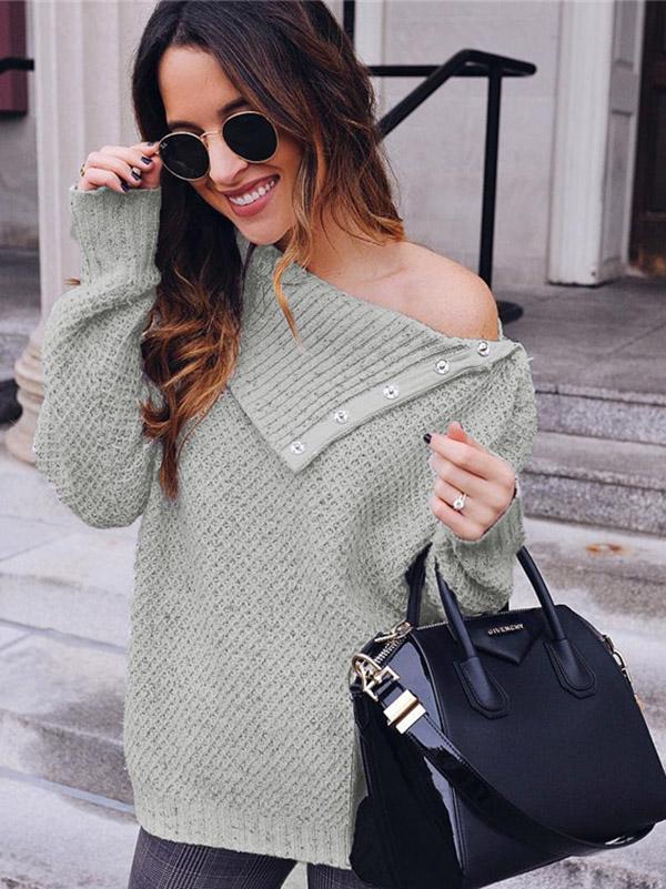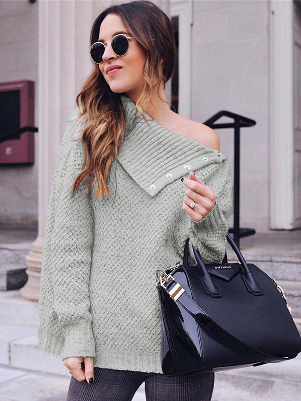 Asymmetric Solid Color Long Sleeves Sweater Tops