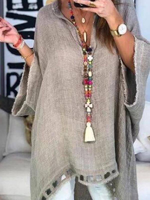 Asymmetric Solid Color V-neck Blouses&shirts Tops