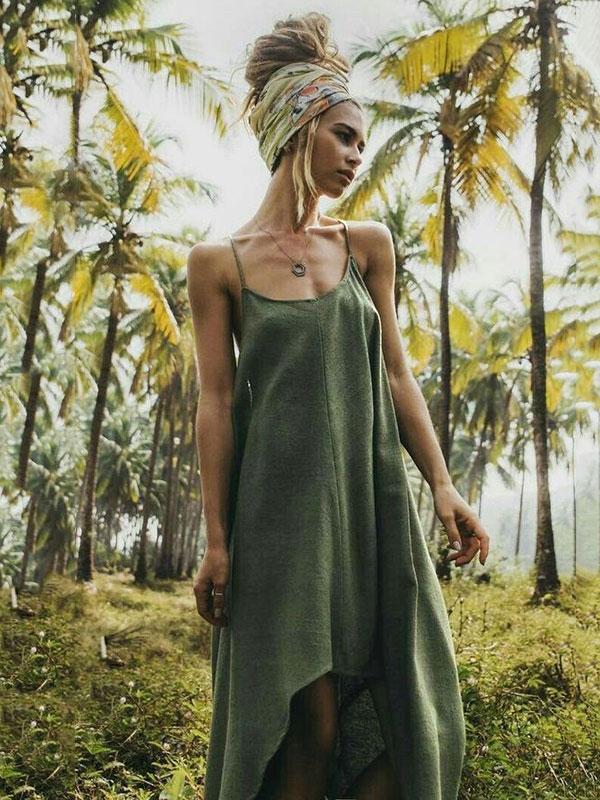 Asymmetric Spaghetti-neck Midi Dress