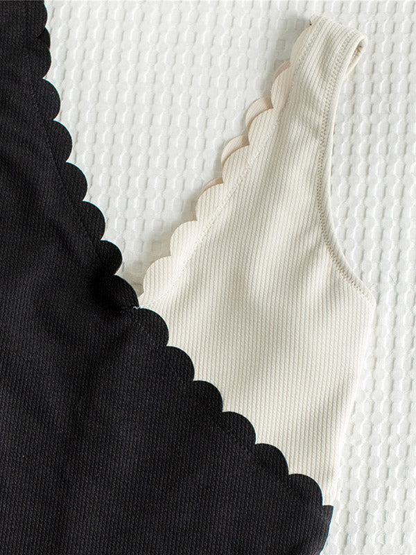 Asymmetric Split-Joint V-Neck One-Piece Swimwear