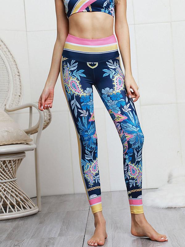 Back Cross Crop Printed Tanks And Leggings Yoga Suits