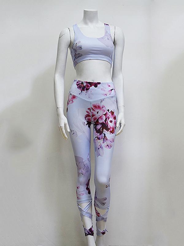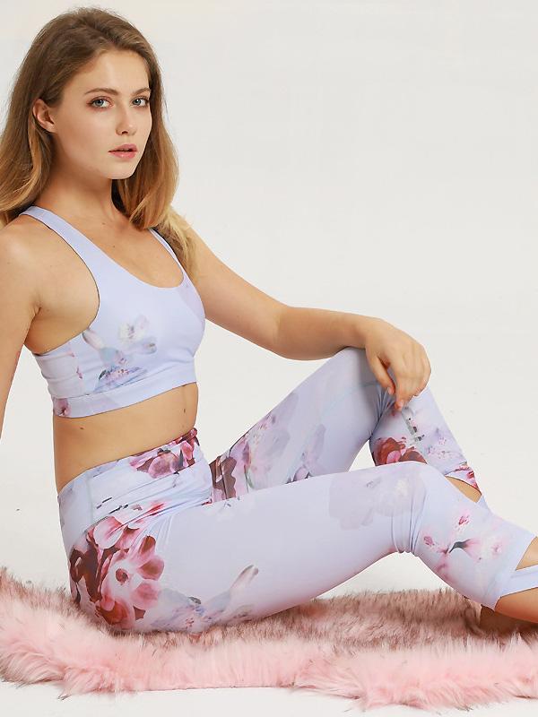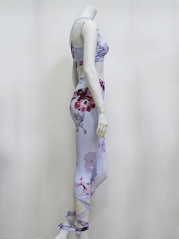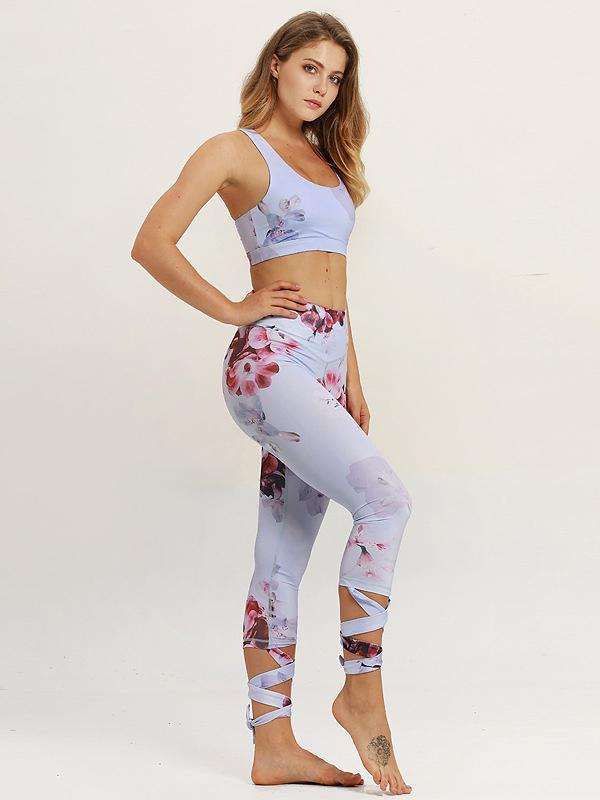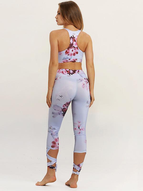 Bandage Floral Printed Sports Bra and Fitness Legging Suits