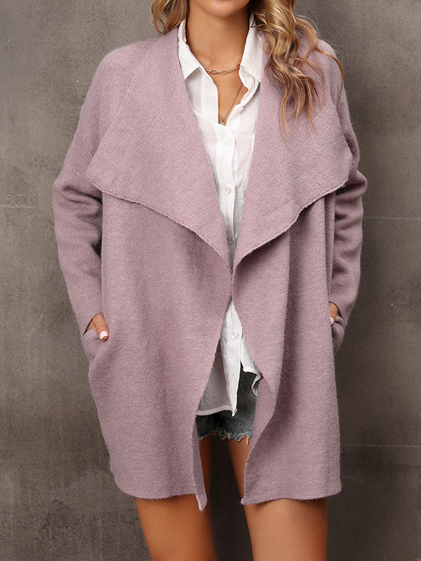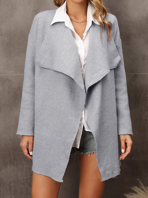 Batwing Sleeves Long Sleeves Solid Color Lapel Outerwear