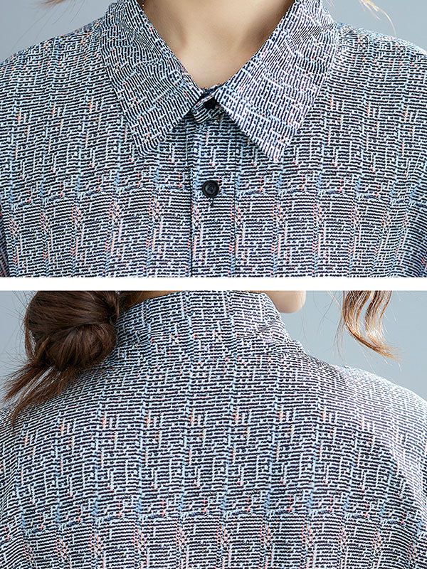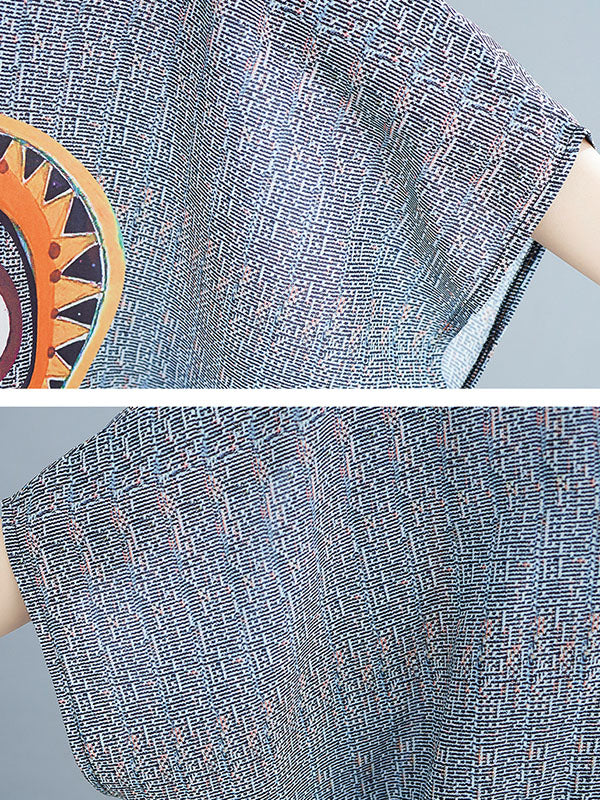 Batwing Sleeves Loose Printed Lapel Midi Dresses