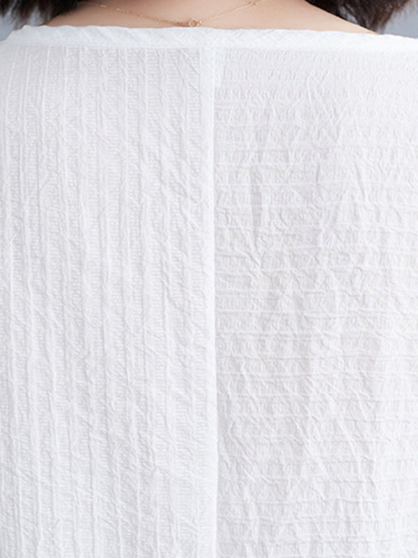 Batwing Sleeves Loose Solid Color Split-Joint Round-Neck T-Shirts Tops