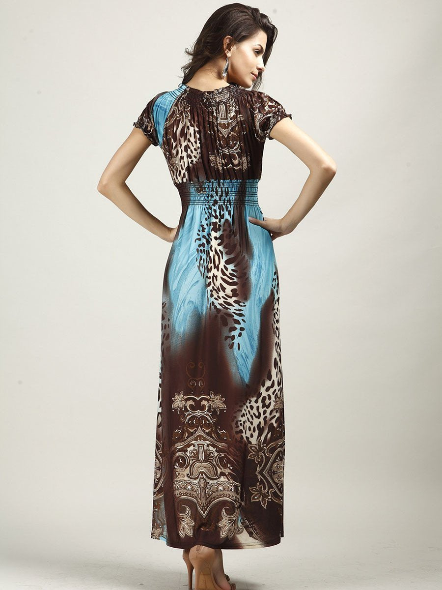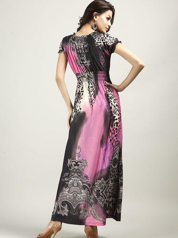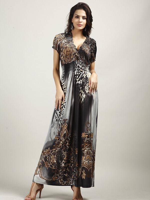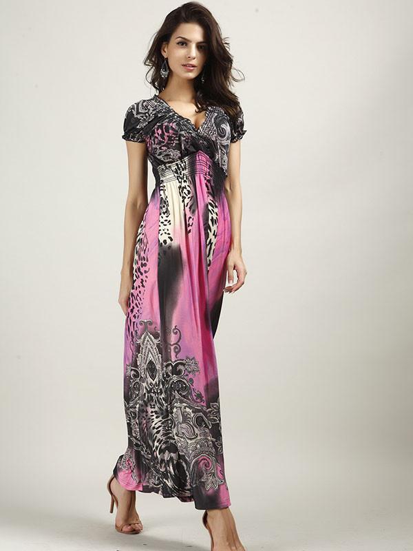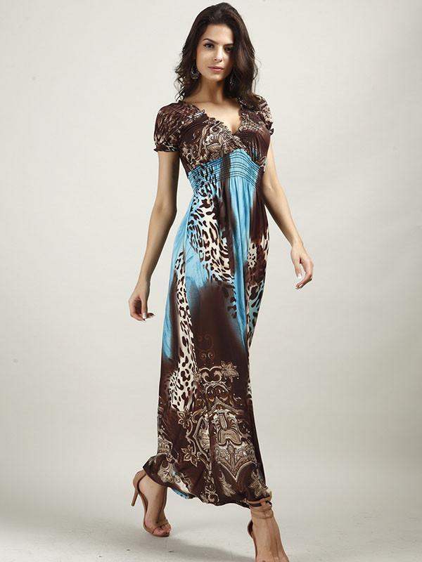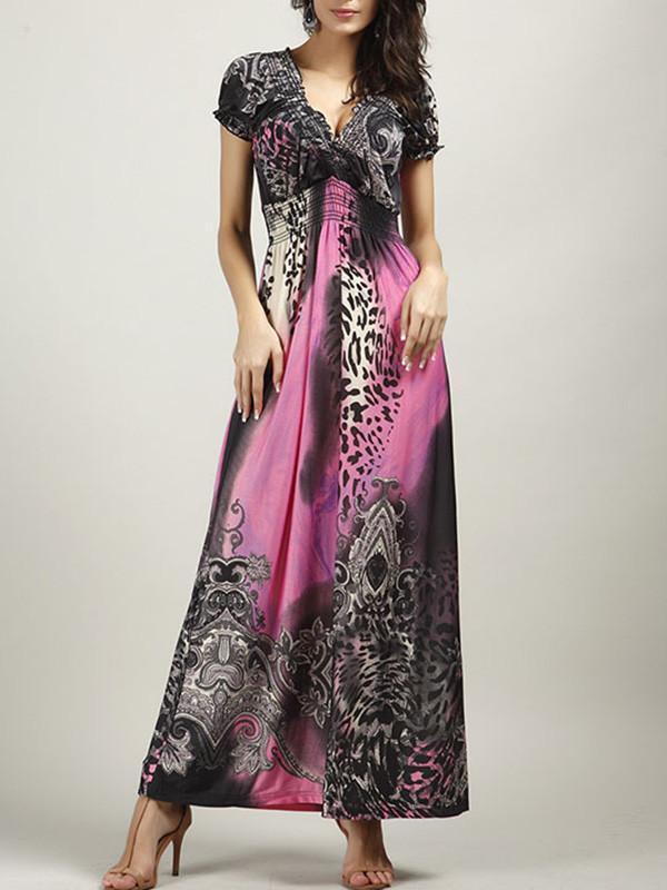 Beautiful Bohemia Floral Short Sleeve V Neck Maxi Dress