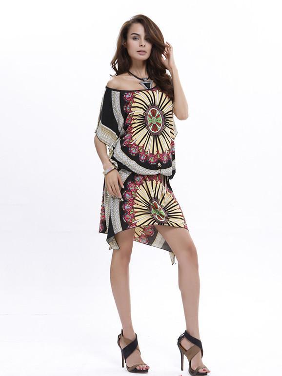 Beautiful Floral-Print Short Bat Sleeve Bohemia Beach Maxi Dress