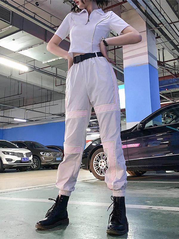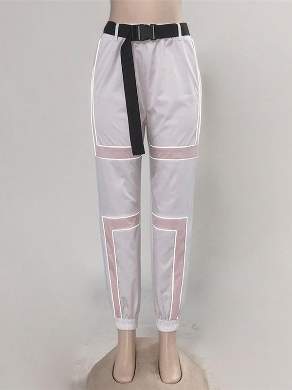 Belted Two Tone Casual Cargo Pants