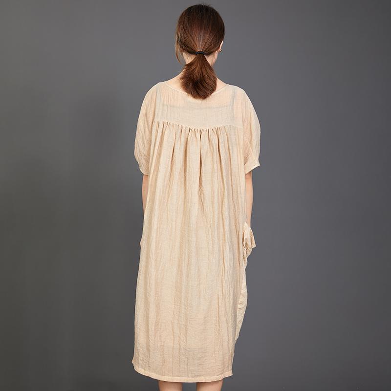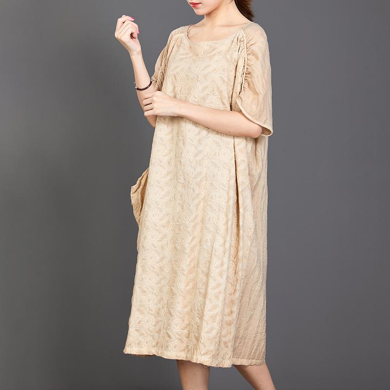Big Pockets Jacquard Short Sleeve Loose Dress