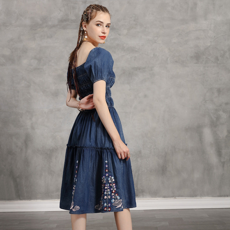 Big skirt dress retro Embroidered Denim Skirt