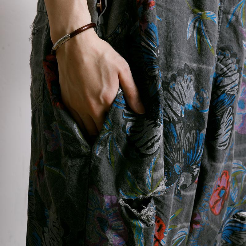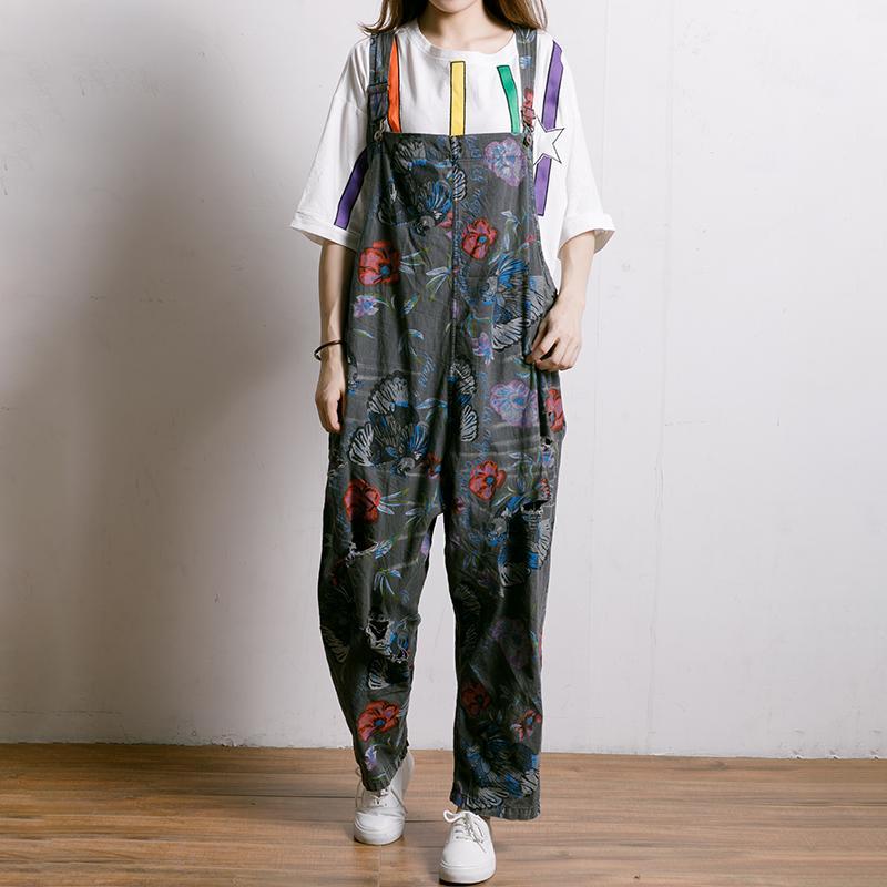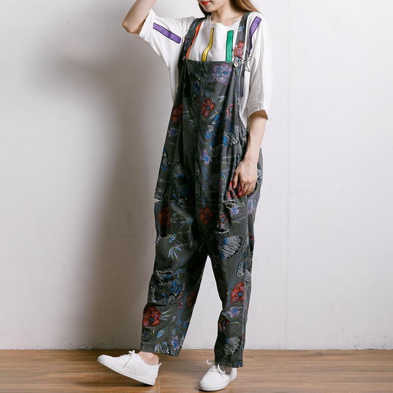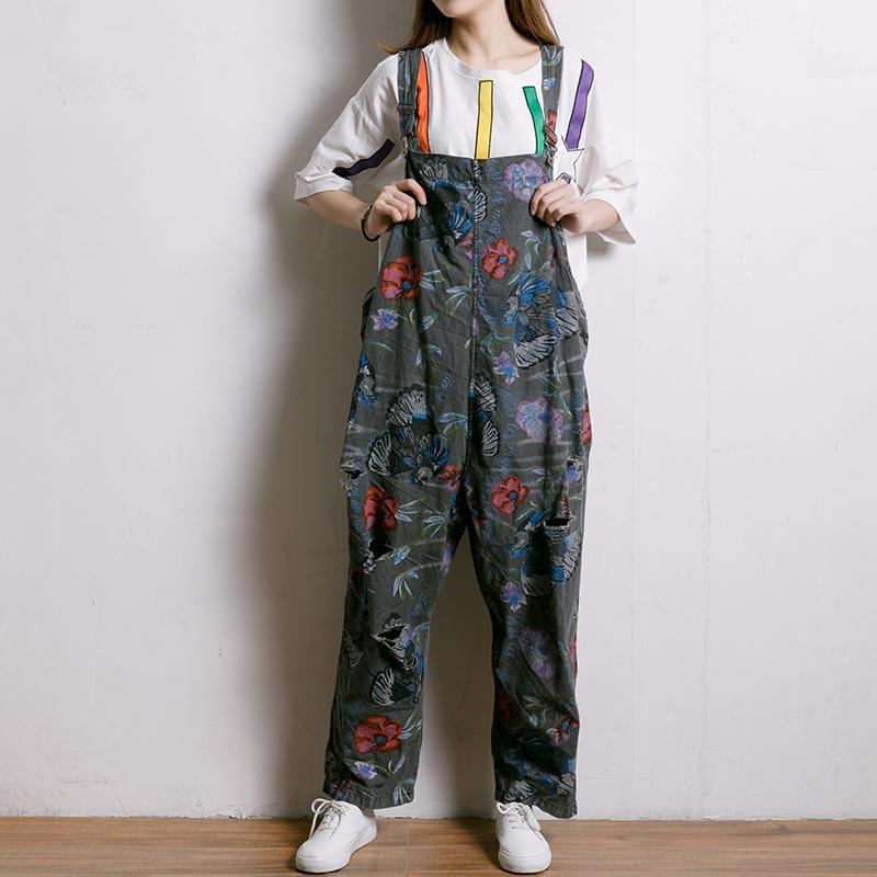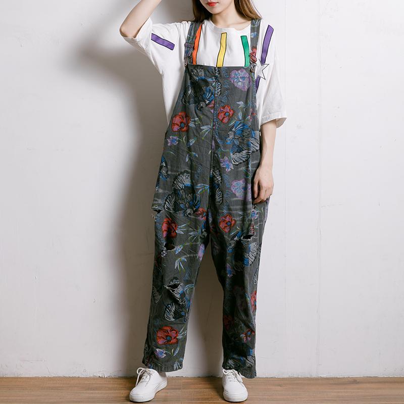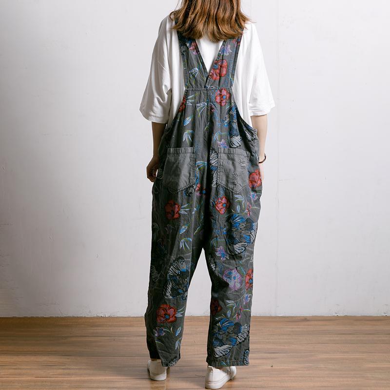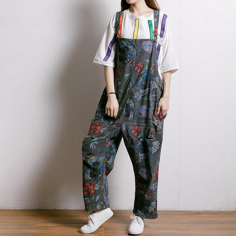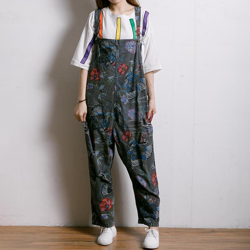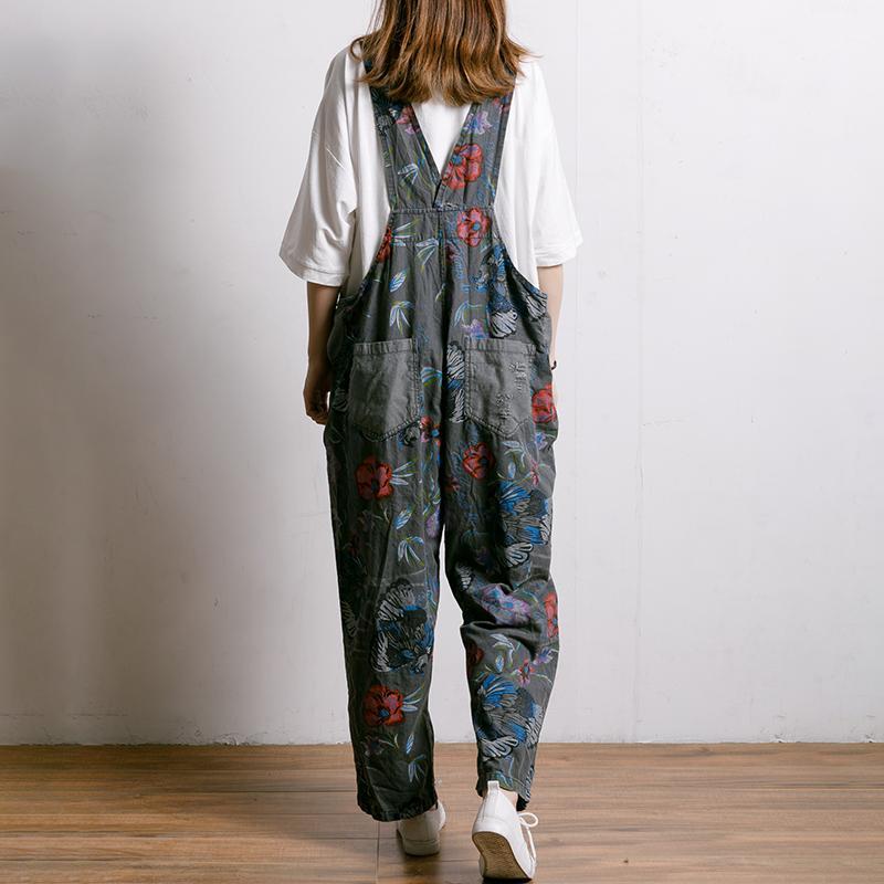 Birds And Flowers Printed Adjustable Strap Jumpsuit