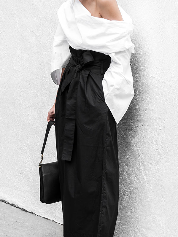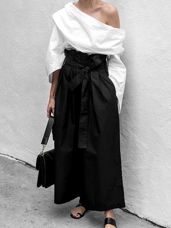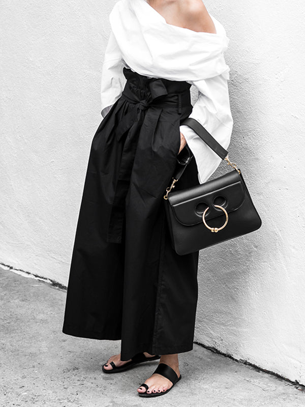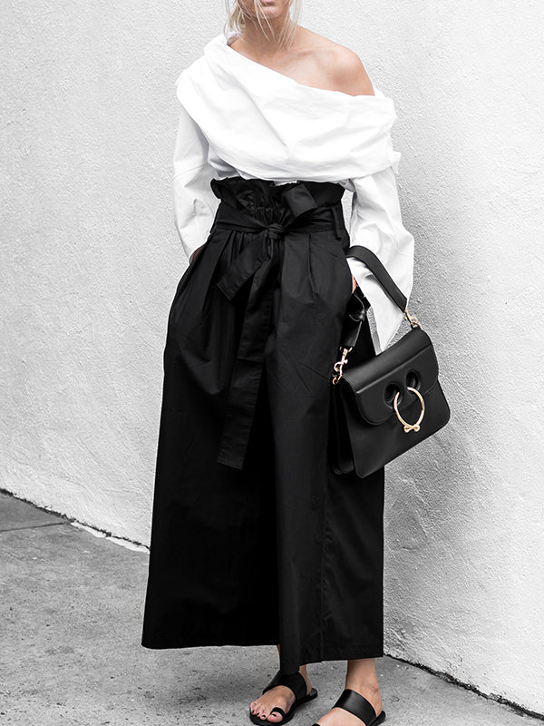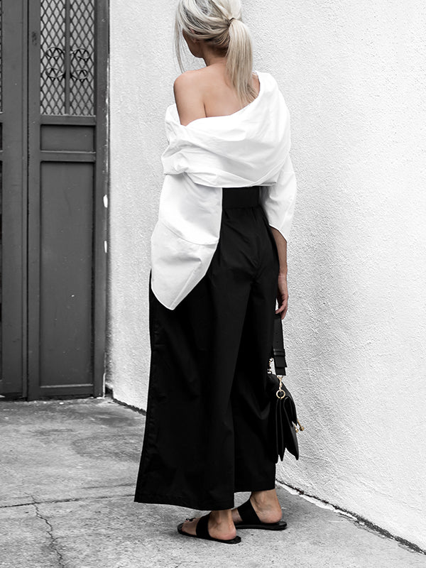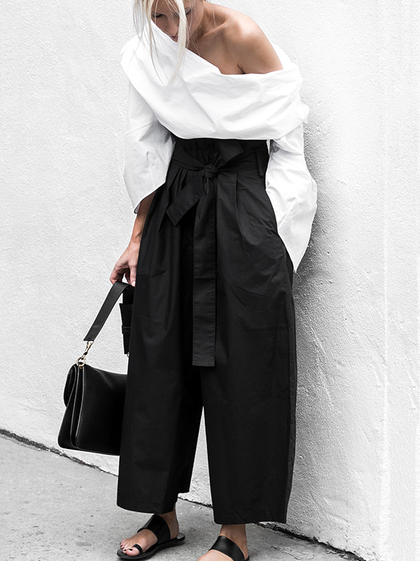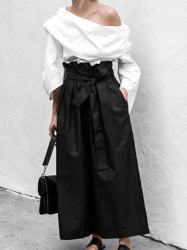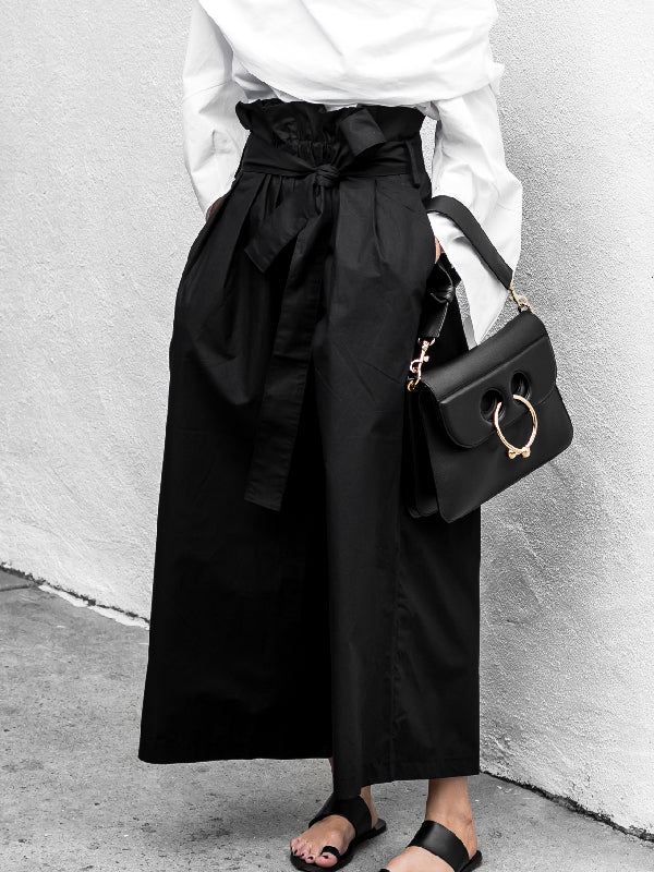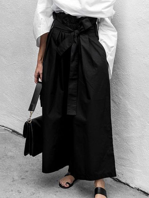 Black High Waisted Loose Solid Color Wide Leg Pants