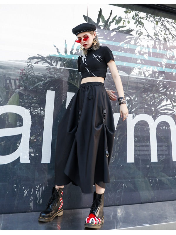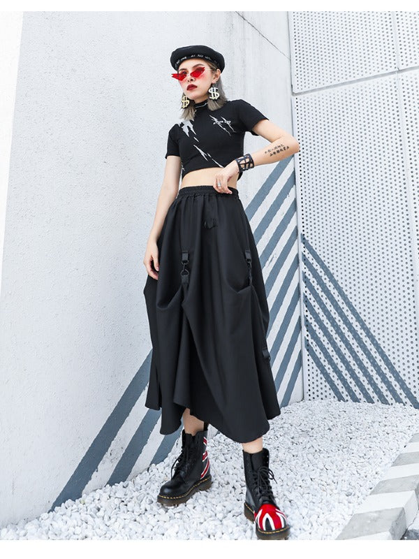BLACK LOOSE EMPIRE A-LINE SKIRT