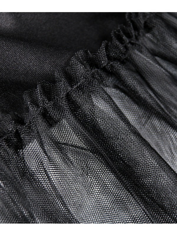 BLACK PLEATED DOUBLE LAYER MESH SKIRT