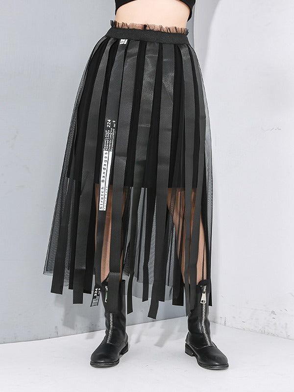 BLACK RIBBON CROPPED MESH SPLICING SKIRT