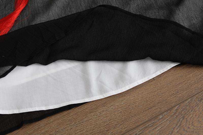 Black Summer Fake Two-piece Pockets Retro Tassel Dress