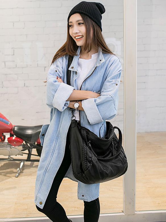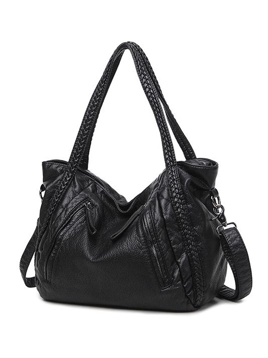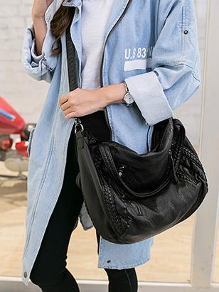Black Zipper Single Shoulder Bag Tote Bag