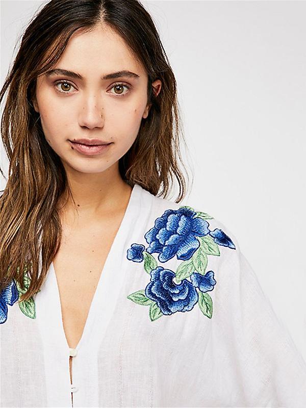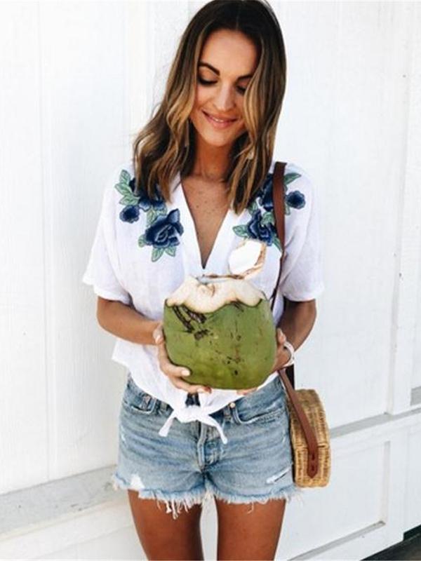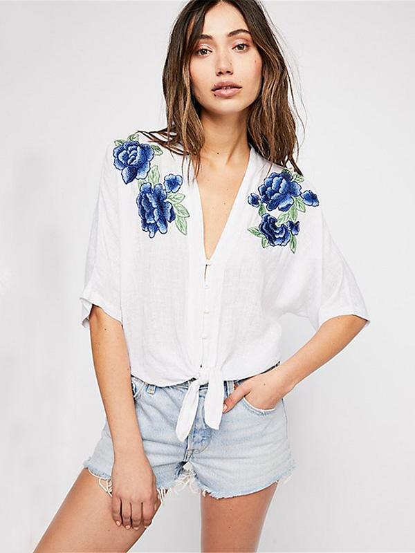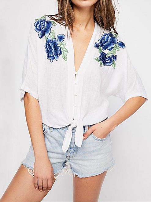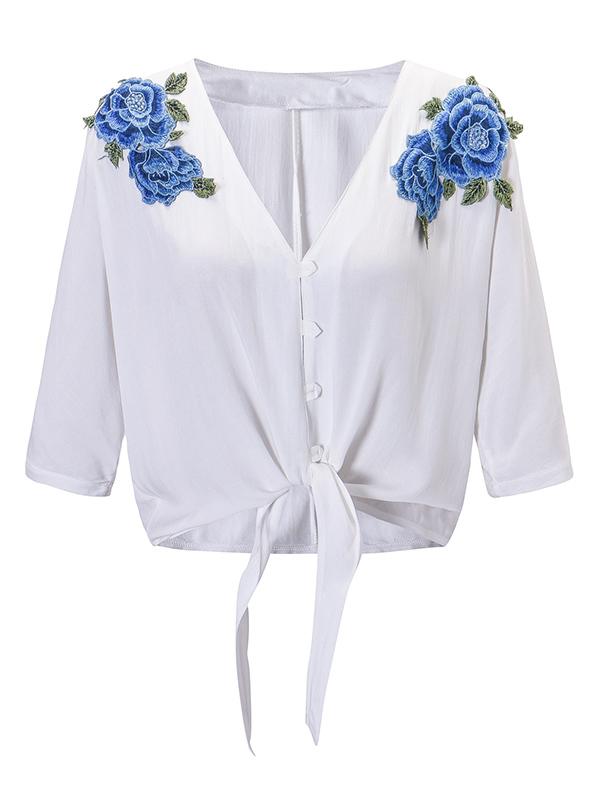 Blue Applique Single Breasted Blouses&Shirts Tops