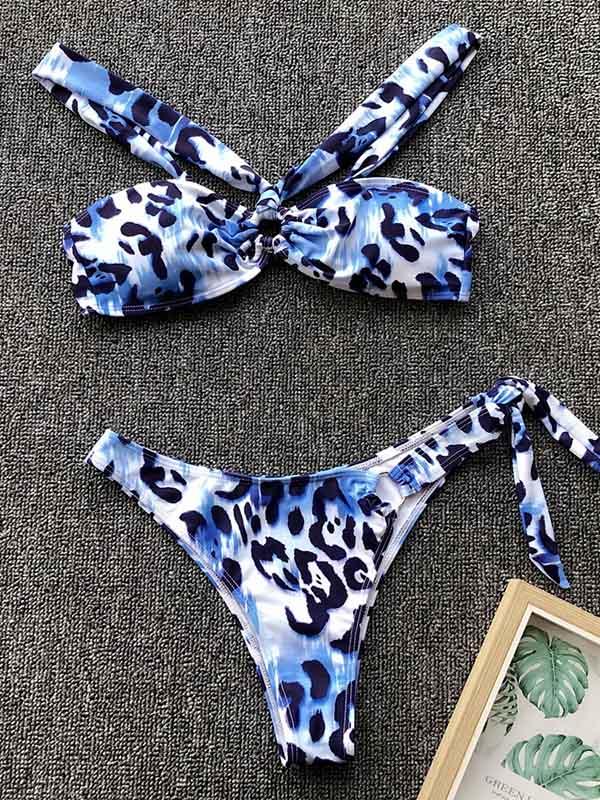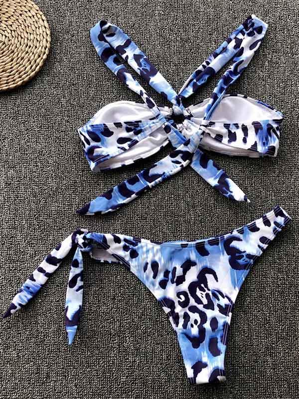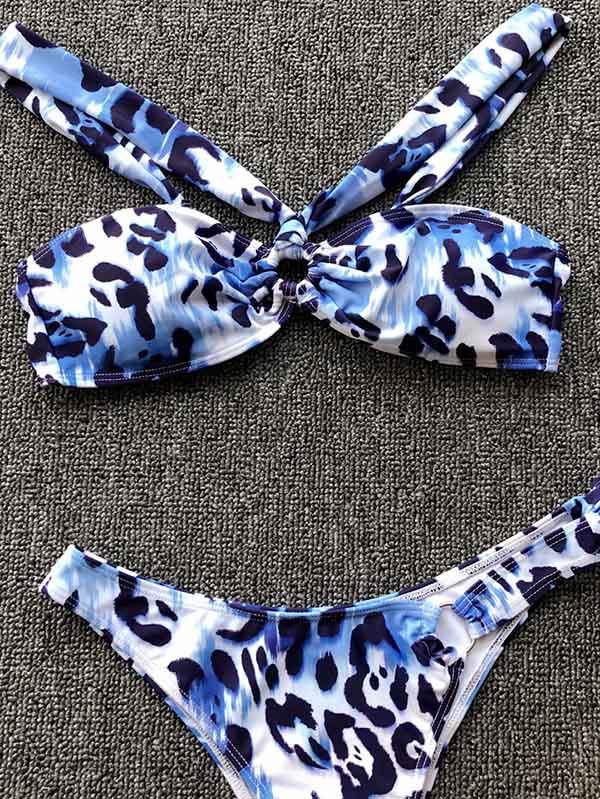 Blue Leopard Knot Bikini Set