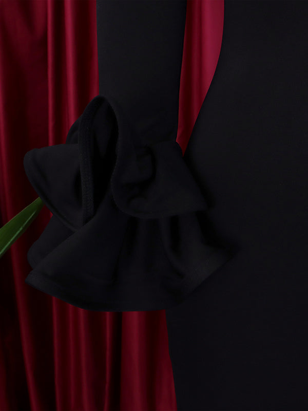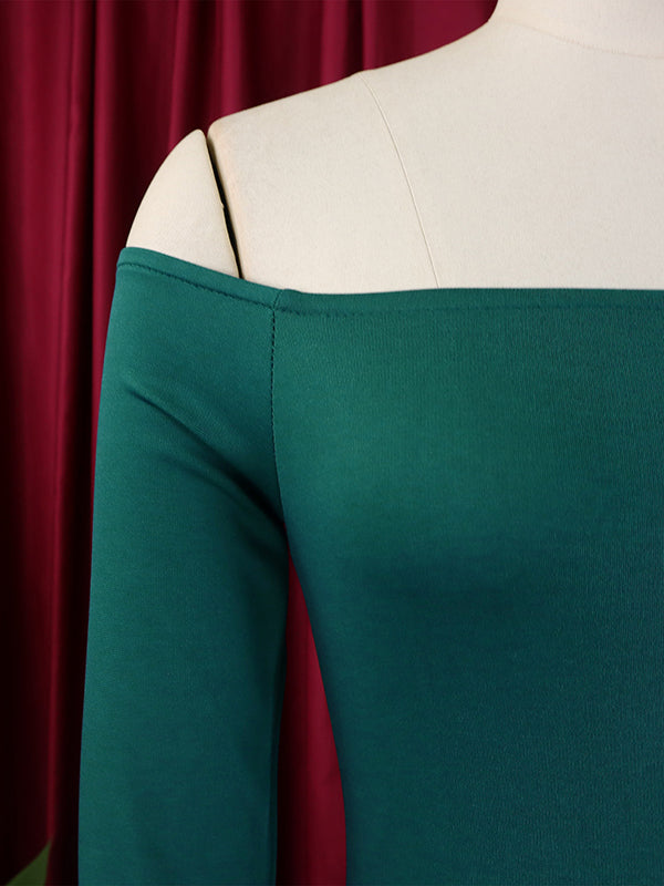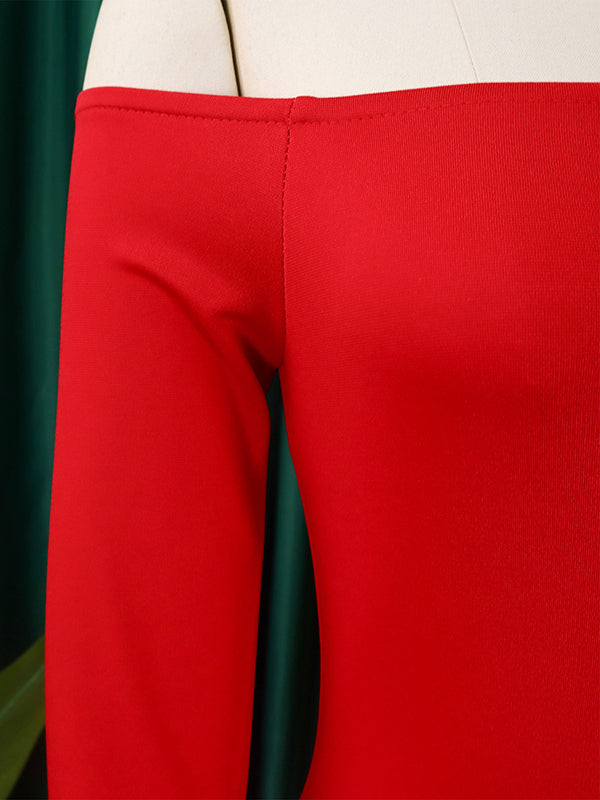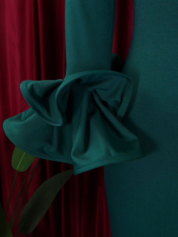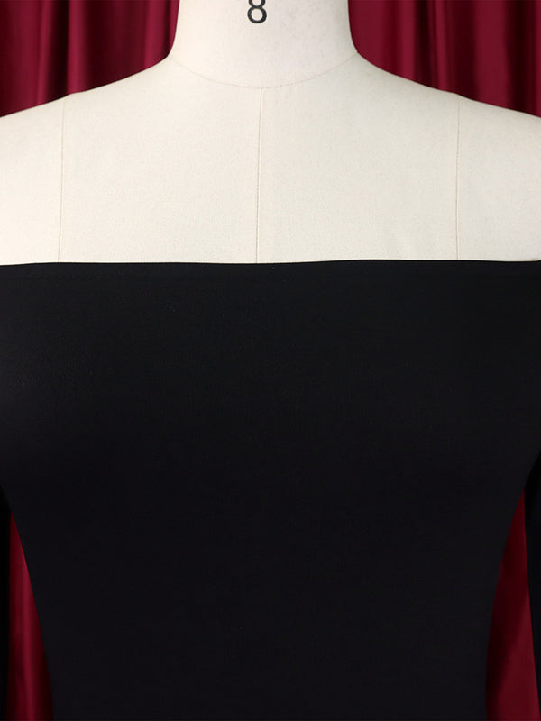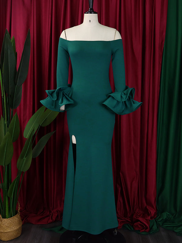 Bodycon Flared Sleeves Falbala Solid Color Split-side Off-the-shoulder Maxi Dresses